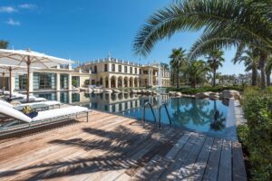 Doté de neuf suites et de plusieurs salons de réception, le Palais Vénitien combine le marché du luxe de Cannes et l’héritage architectural de Venise.