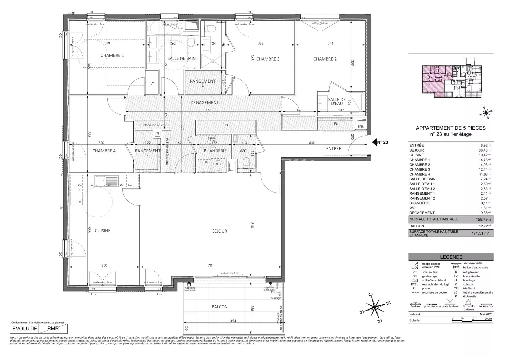 This 5-room apartment is perfect for a large family looking for both comfort and modernity, with several bathrooms and storage space, and a 13m2 terrace to enjoy the view.