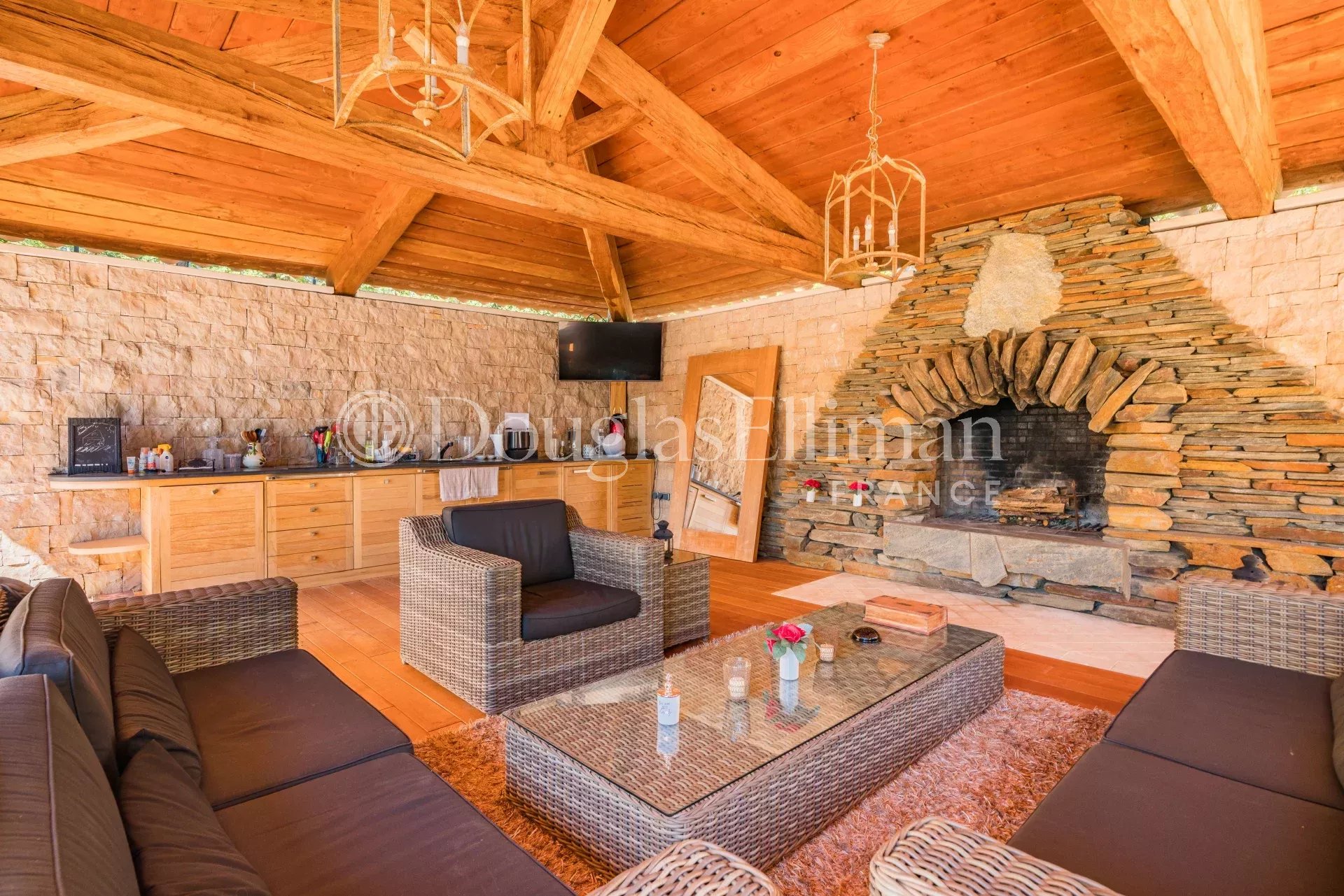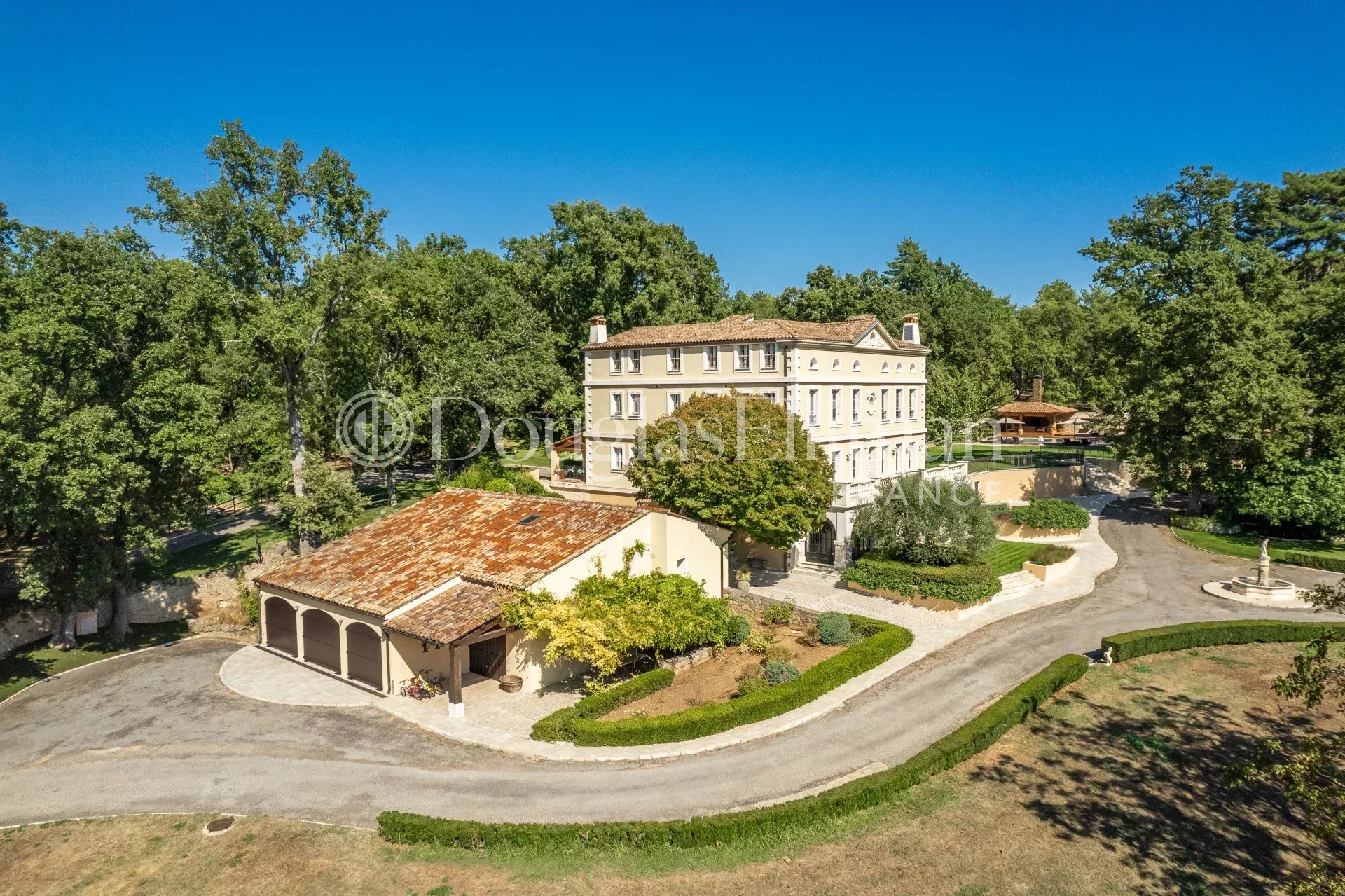 This grand Manor is situated within a 15-hectare park, just 1800 meters away from the charming village of Callian. It’s a 45-minute drive from Nice Airport and only a 15-minute helicopter ride from Monaco.