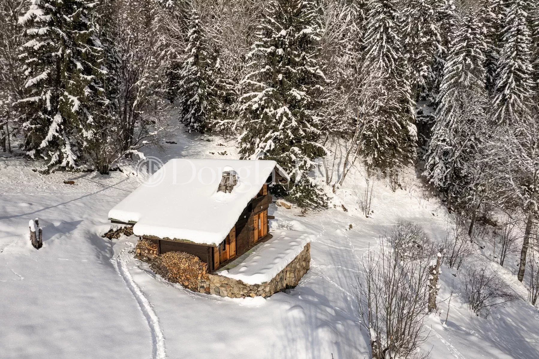 This is a rare property for sale. The position is quite magical, sat in extensive grounds on the edge of the forest with the most wonderful views of the peaks. However, it is not for everyone given the lack of vehicular access and restrictions on any building, certainly extension of the existing chalet. Still, if you want the tranquility and the land, this is something very special.