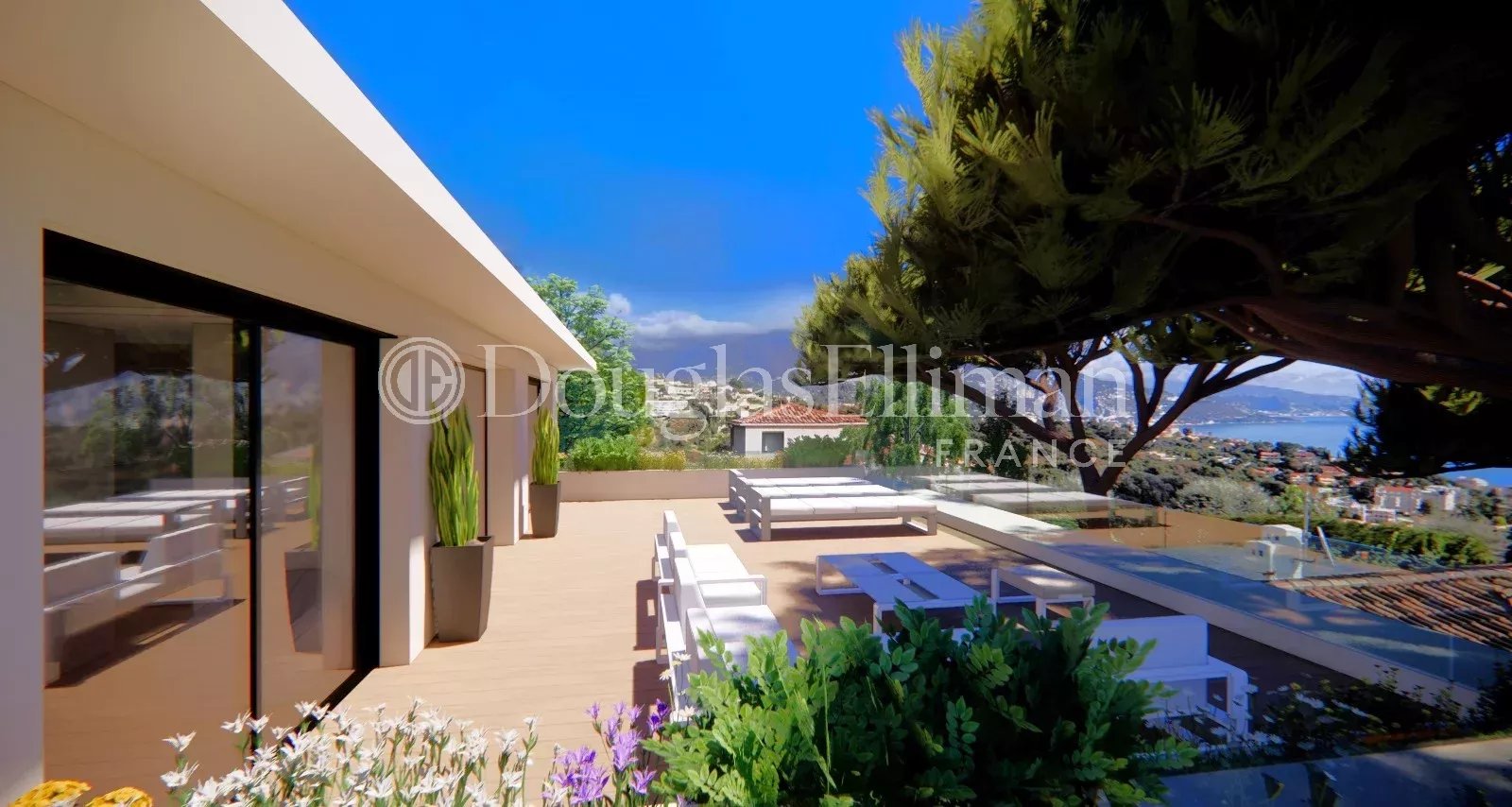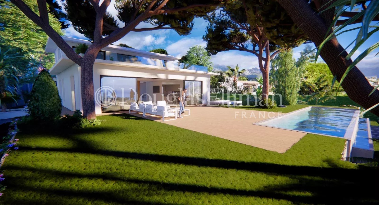 Close to Monaco, on a flat plot of approximately 1000 m², offering a beautiful sea view, this property is currently being renovated with a permit for its transformation into a contemporary villa on two levels with 5 bedrooms.