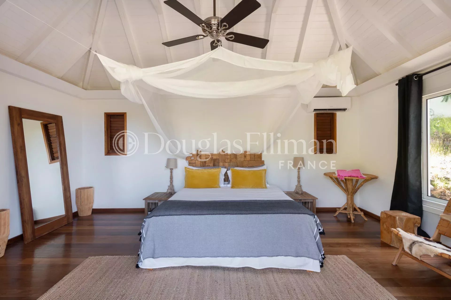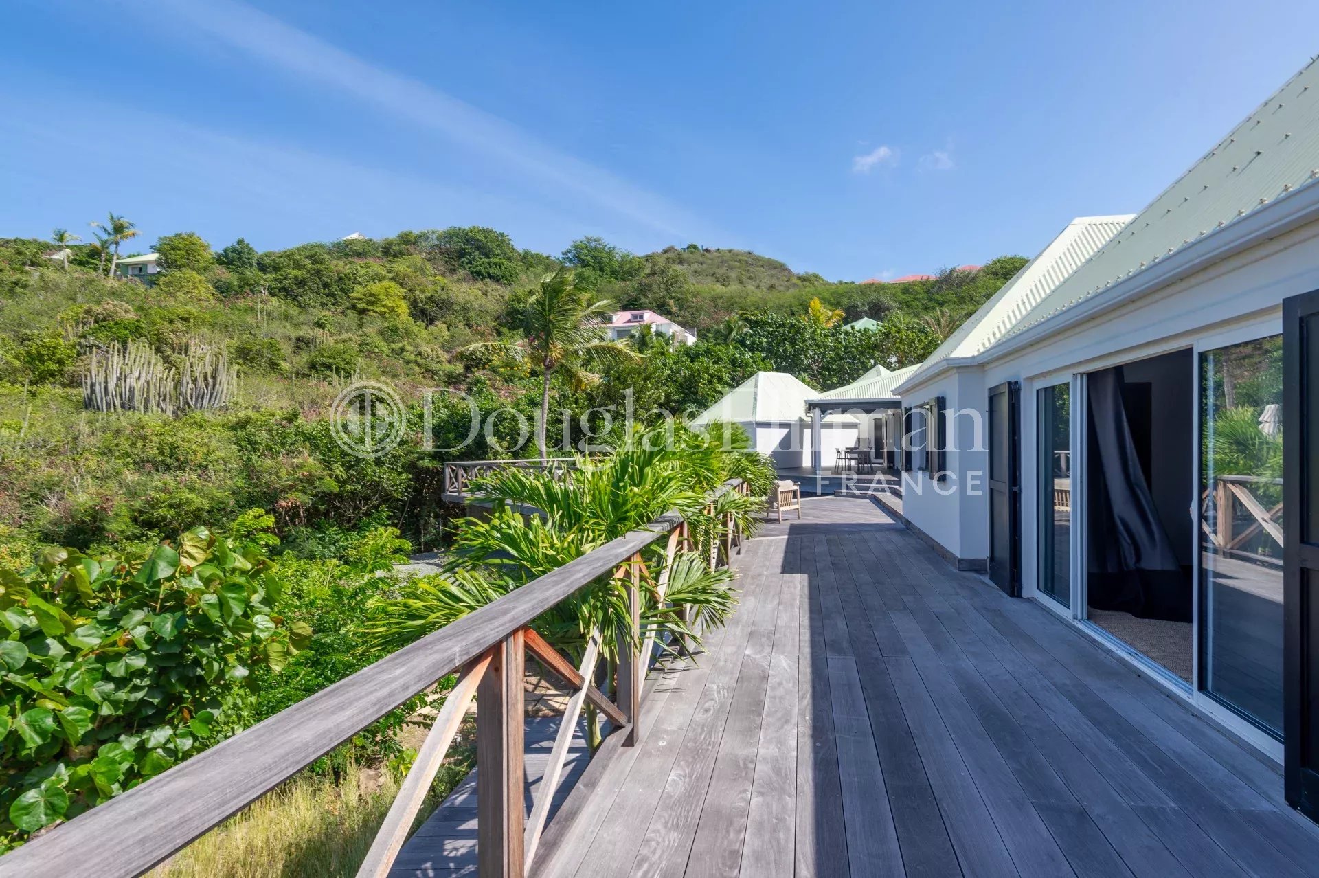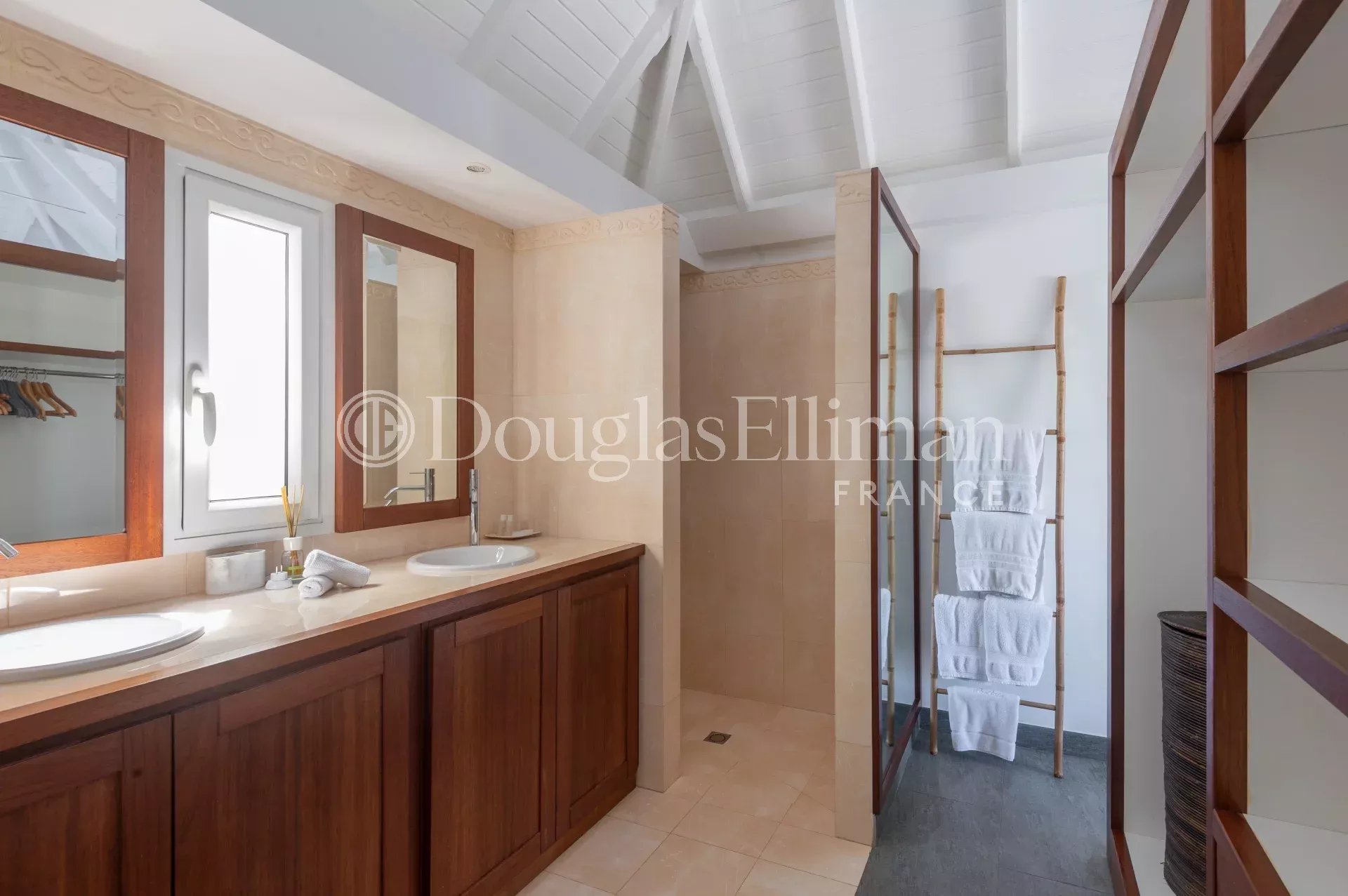Located in Petit Cul-de-Sac, in a quiet, leafy setting right next to the lagoon and hotels such as the Toiny or the Barthélemy, the MLE villa offers a peaceful, sought-after living environment in Saint-Barthélemy.