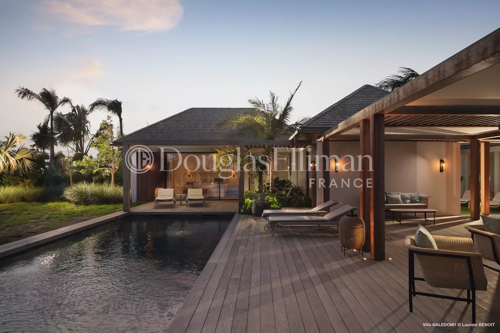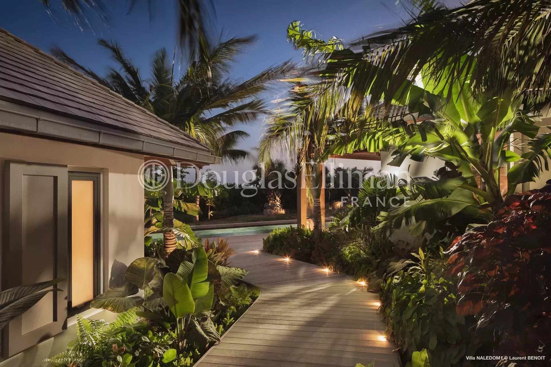In the heart of a carefully landscaped tropical garden, the villa, which enjoys a slight sea view, has a large swimming pool, a dining patio and four private parking spaces.