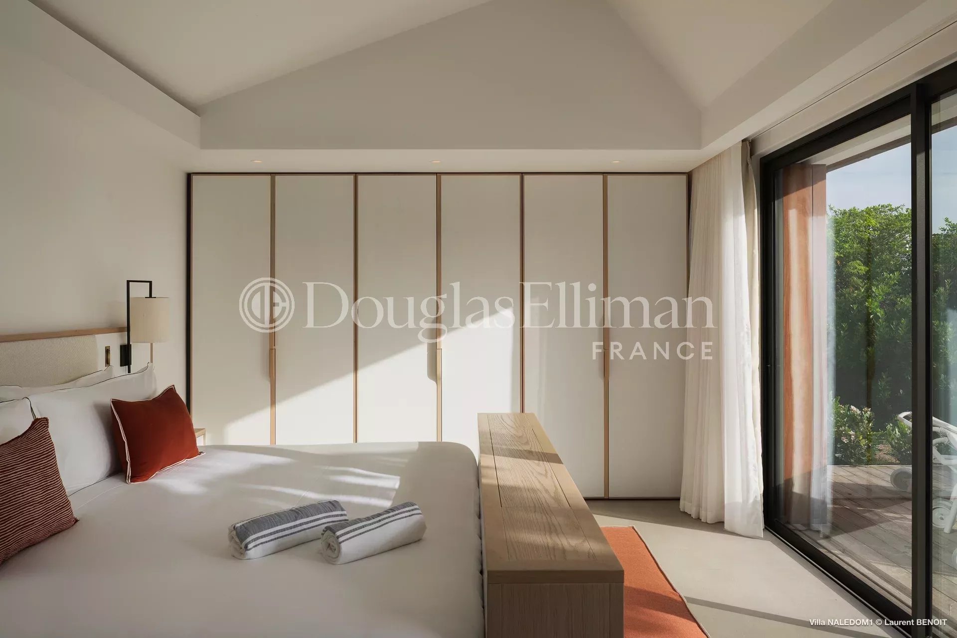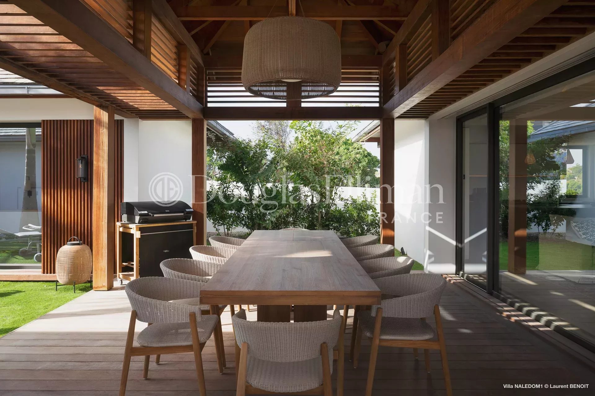Set in grounds of around 2,000 m², this 194m² property is organized around a vast living room with a furnished and equipped open kitchen, as well as four independent suites of over 30 m², each with its own bathroom, dressing room and terrace. The suites are equipped with integrated technological solutions for discreet, contemporary comfort.