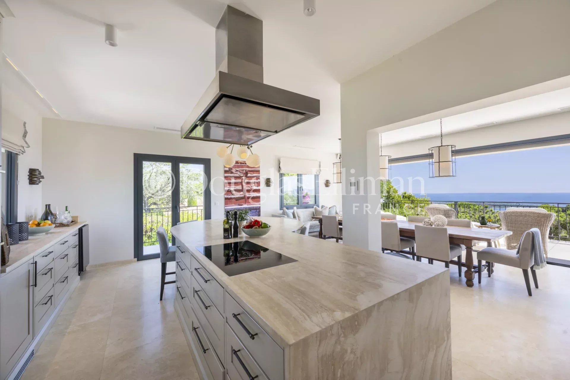 The villa has been completely renovated in a modern style using high-quality materials and features underfloor heating and air conditioning. It offers 5 bedrooms, a large, bright living room with a fireplace, an open-plan kitchen opening onto a beautiful terrace with sea views, a study and a magnificent wine cellar built into the rock.