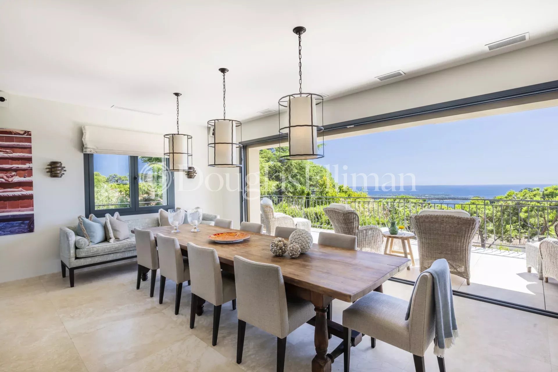 Located on the hills above Cannes, this magnificent 320 m² Provençal villa enjoys a commanding position and offers stunning panoramic views of the sea and the Lérins Islands.