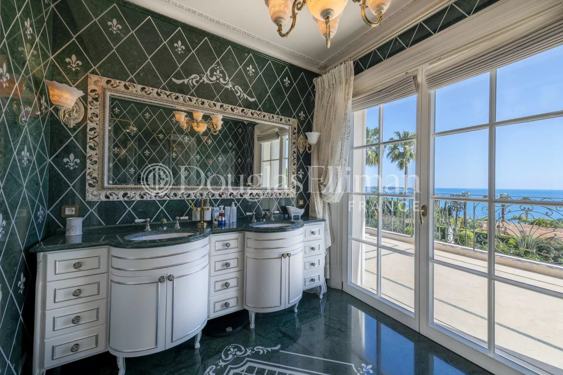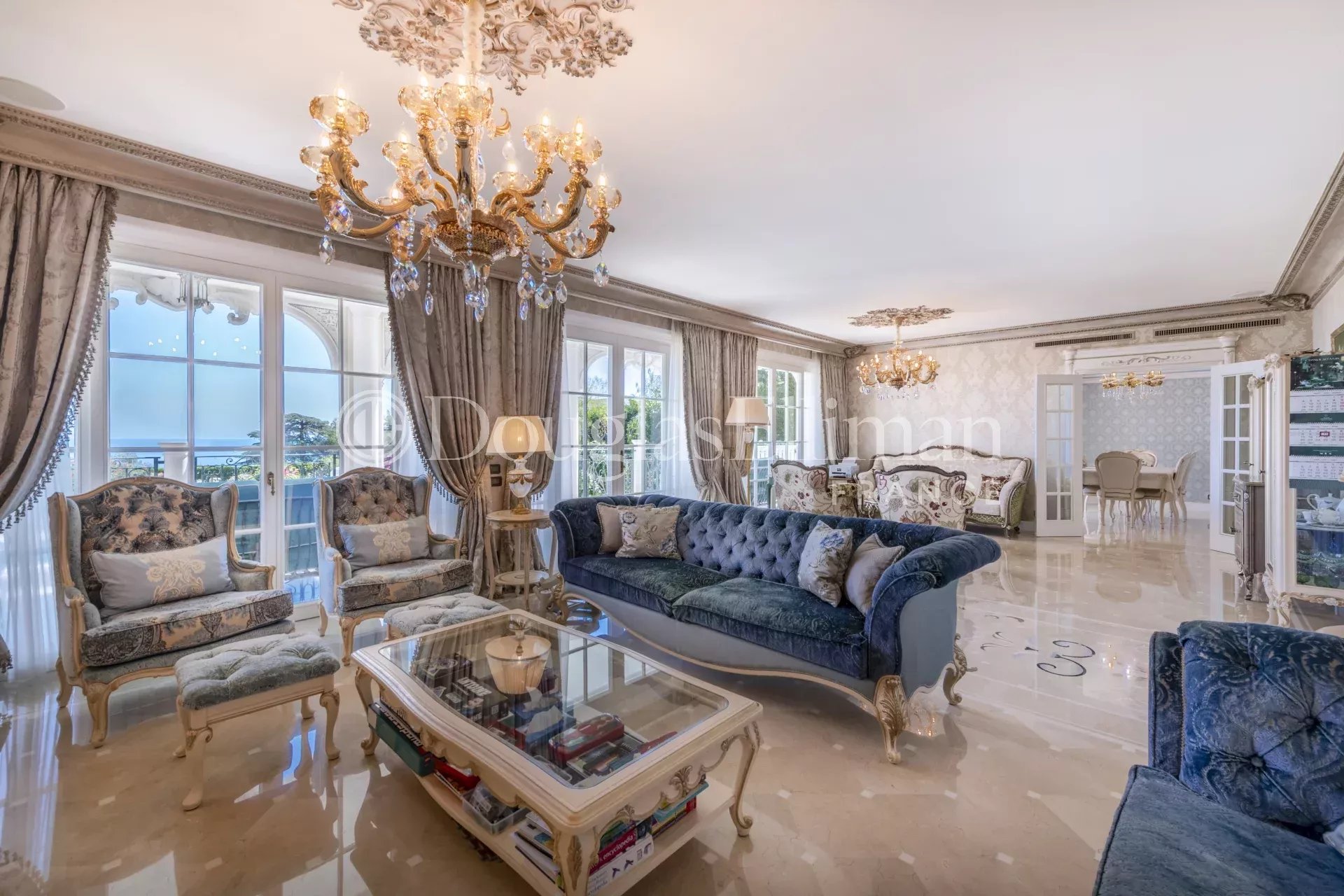 Located in the highly sought-after Super Cannes area, just ten minutes from the centre of Cannes, the Croisette and the beaches, this magnificent 600 m2 villa faces south with panoramic sea views as far as Cap d’Antibes. The property has a flat plot of 2300 m2 with a swimming pool and a beautifully maintained garden with lush Mediterranean vegetation, many beautiful flowers and manicured lawns. It has 3 levels: