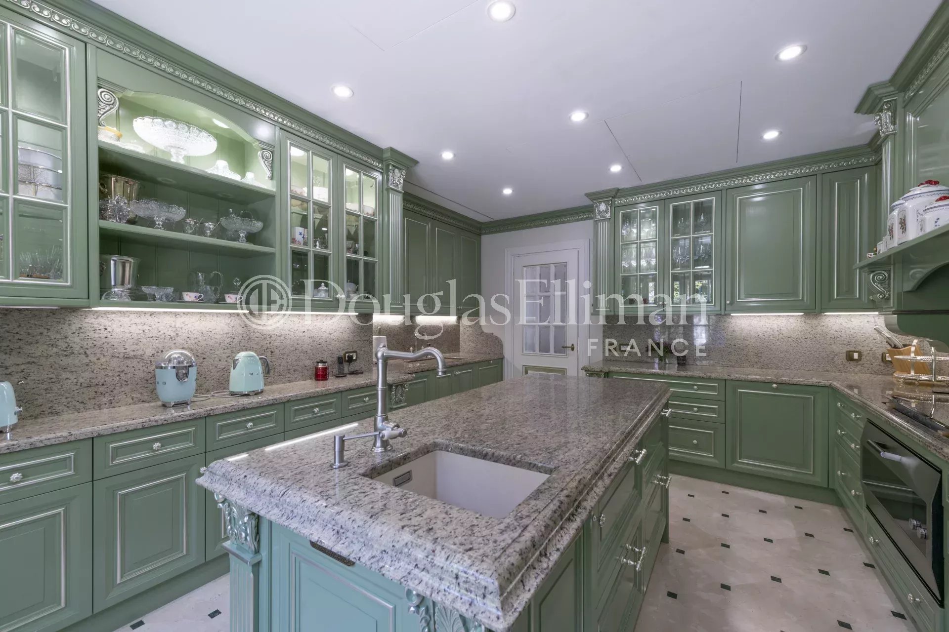 Upstairs, there are 4 bedrooms, including 2 master suites with views of the sea and Cap d’Antibes.