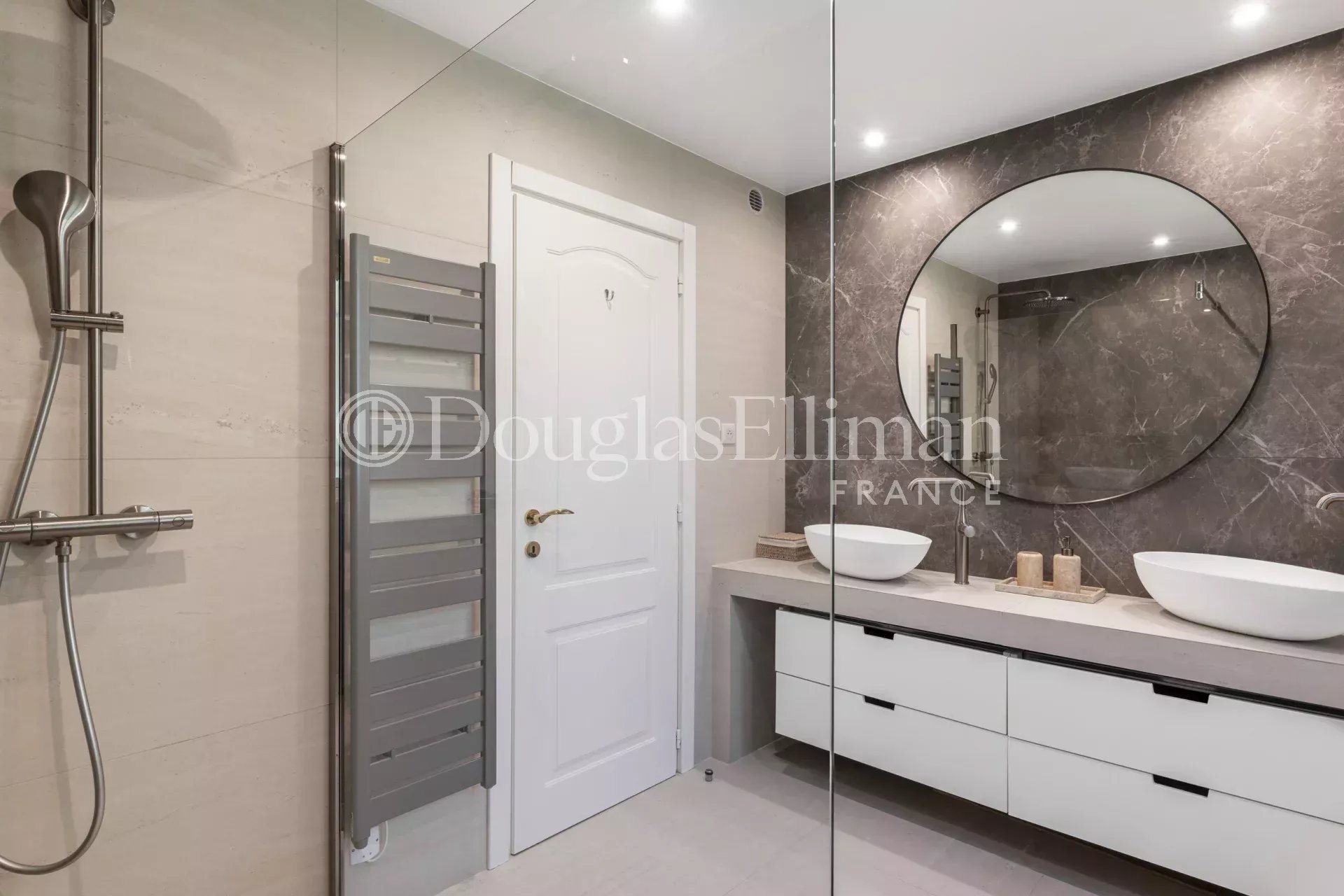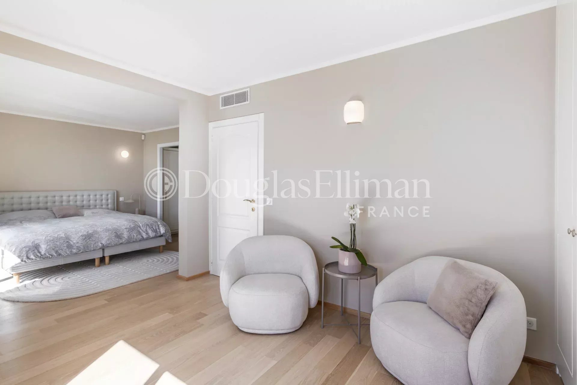 The residence offers a large swimming pool surrounded by solarium areas and lawns, as well as a beautifully landscaped Mediterranean garden (stone pines, oleanders…), accessible directly from the apartment’s garden through a private gate.
