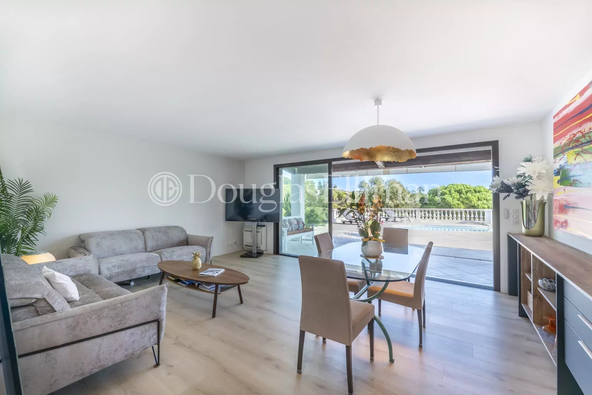 Located in the prestigious Hauts de Vaugrenier estate, this independent 5-room villa, fully renovated in 2023, combines elegance with modern comfort. Featuring 4 bedrooms, one with a private entrance, it offers a spacious, bright living room opening onto a sunny terrace, an infinity saltwater pool, and a modern, fully-equipped open kitchen.