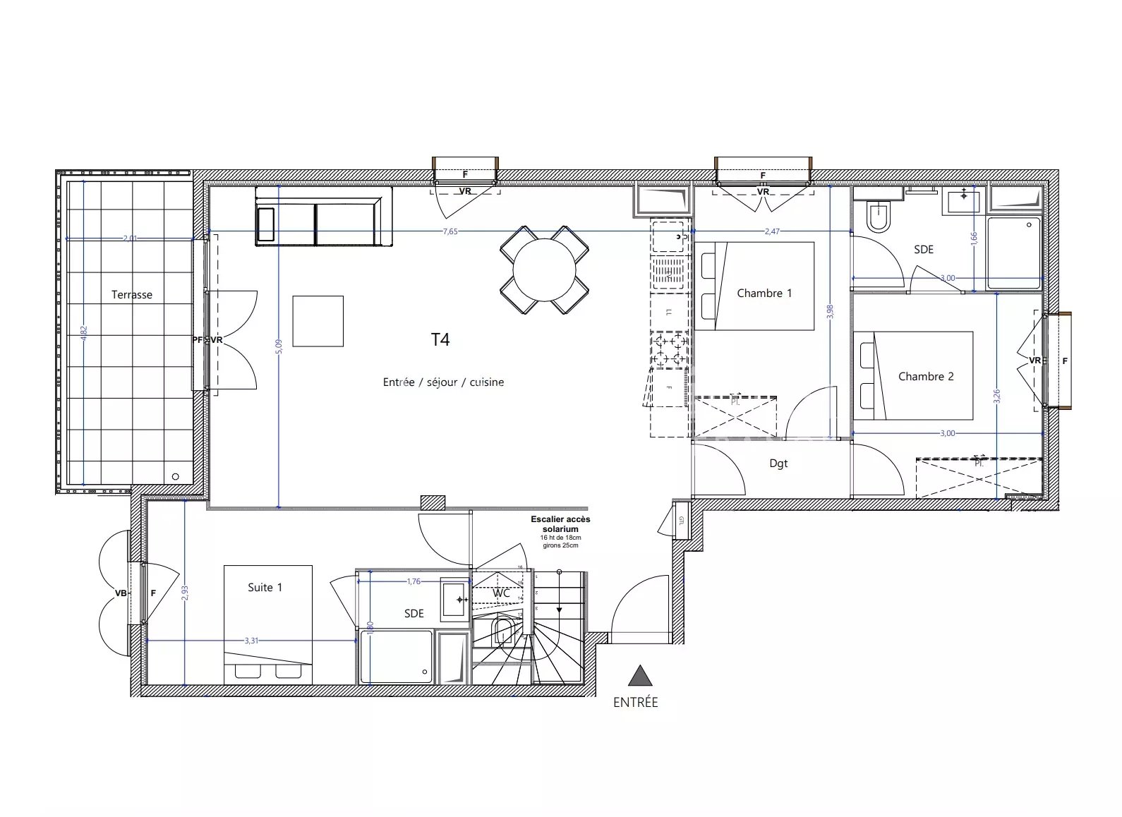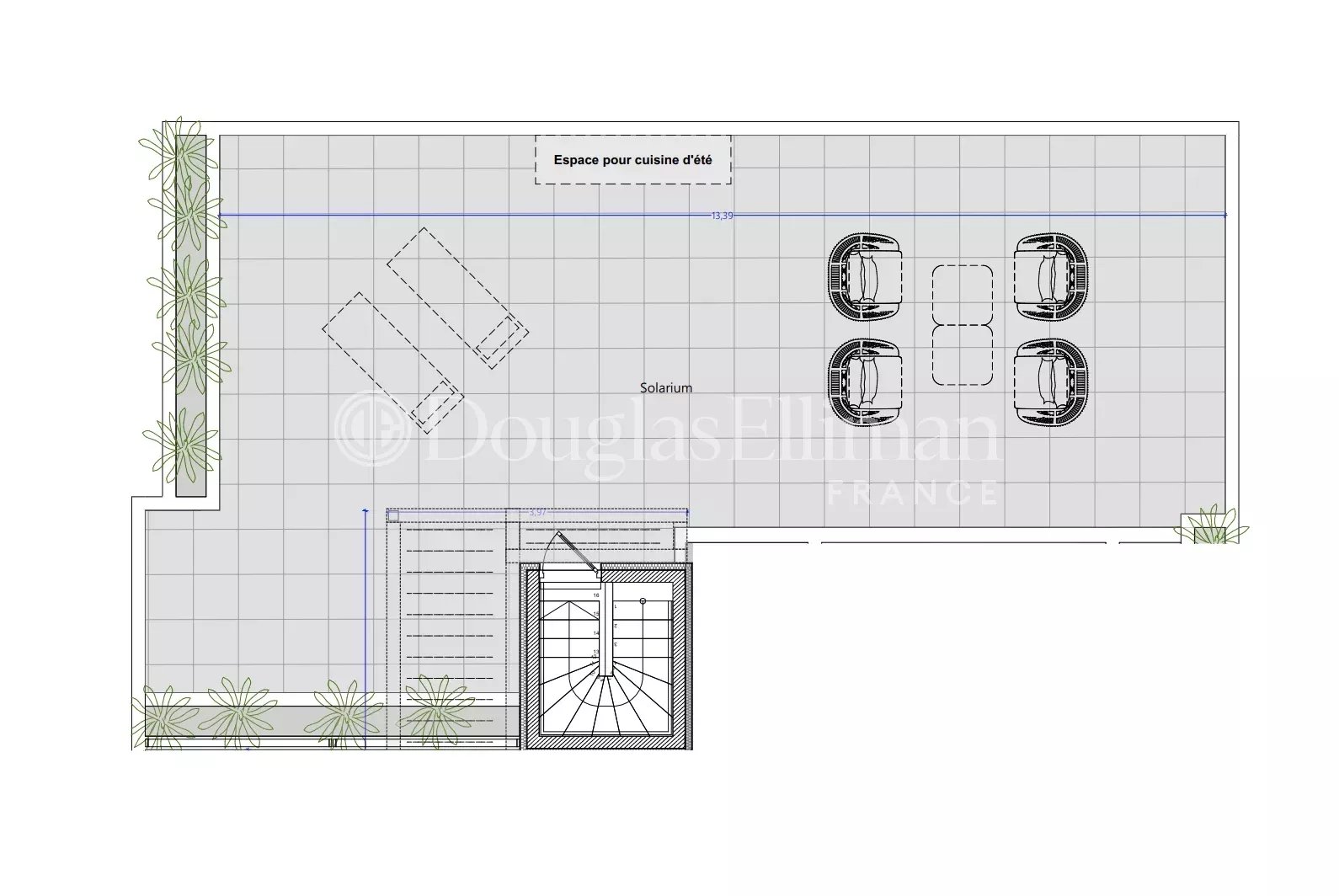 L’appartement, situé au dernier étage et traversant est composé de la sorte : Une pièce de vie avec cuisine américaine de presque 43m2 ouvrant sur une terrasse de 10m2, une chambre en suite, deux chambres se partageant une salle de douche et un W.C invité, pour parfaire l’appartement, un toit terrasse de 82m2 aménageable comme bon vous semble.