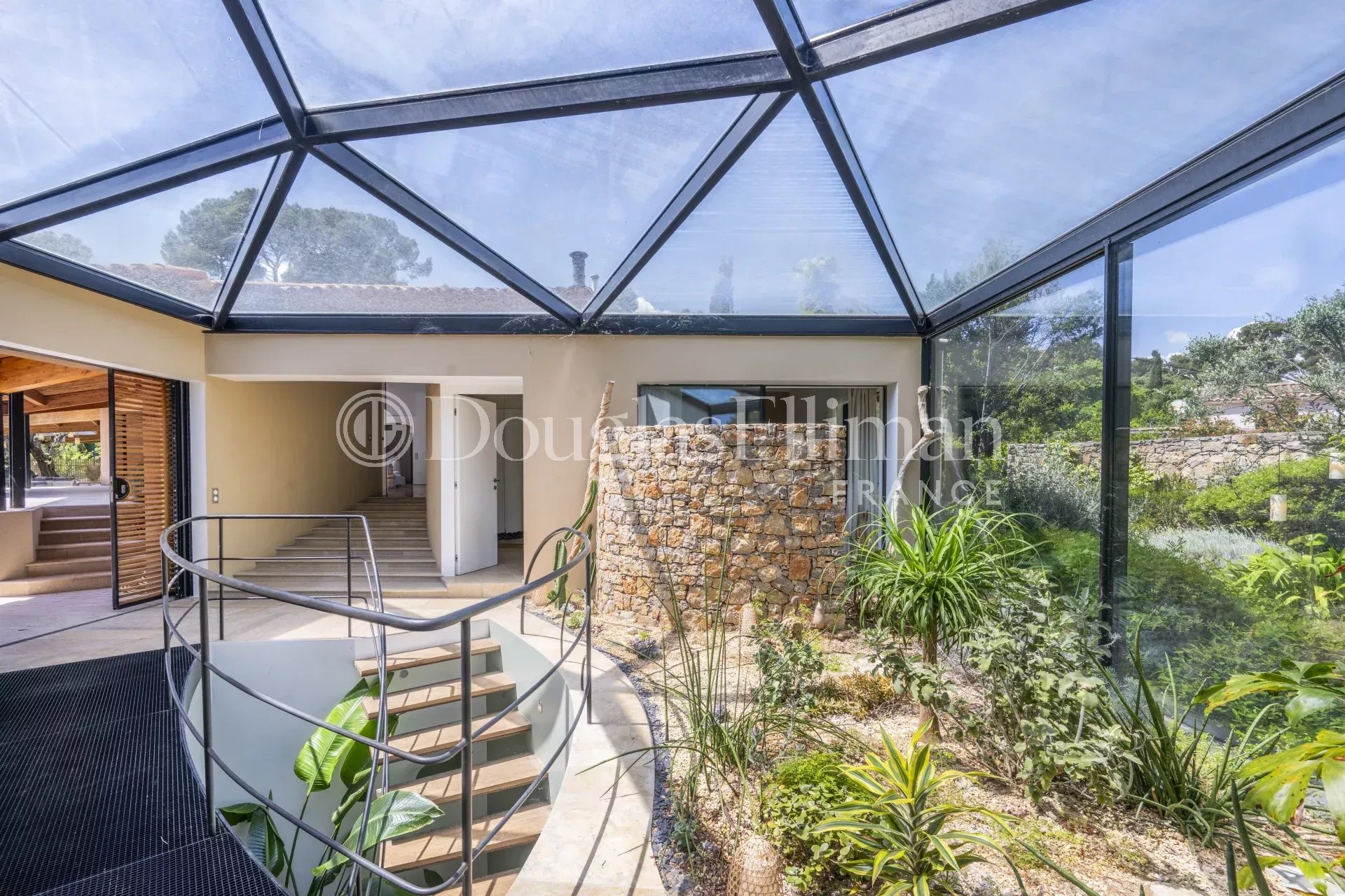 Située dans un quartier résidentiel et confidentiel d’Antibes, en position dominante au cœur d’un jardin paysager de 4 400 m² avec 1 400 plantations et 13 oliviers centenaires, cette propriété signée par l’architecte Sauzet mêle luxe et raffinement.