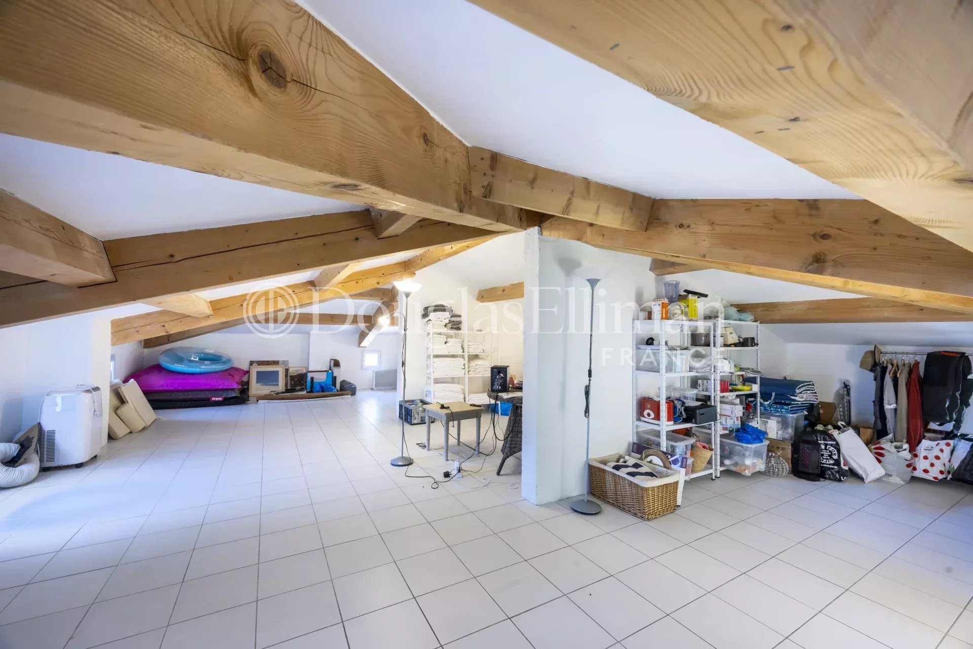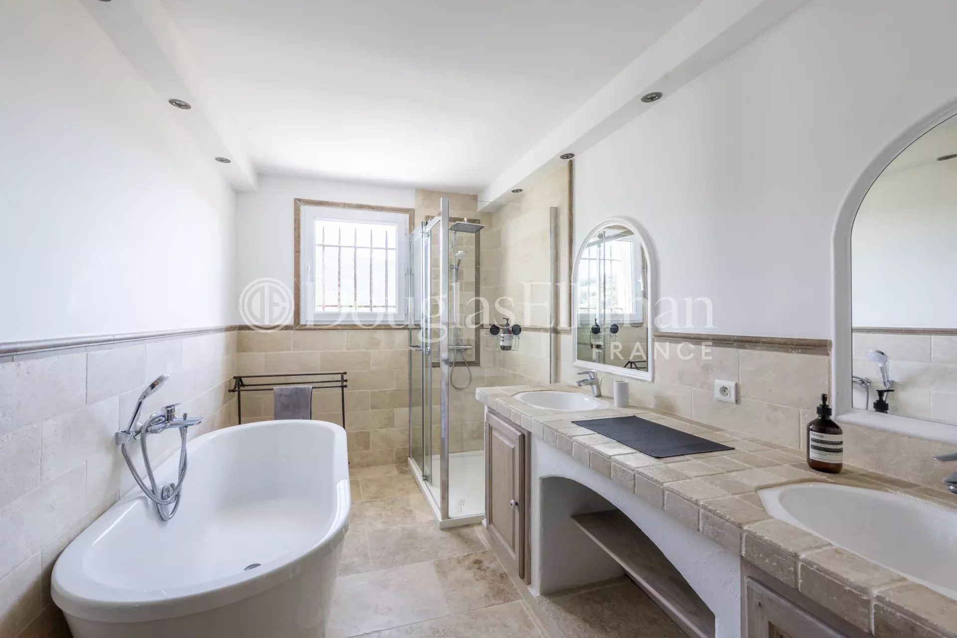 Dès l’entrée, vous êtes accueillis dans un salon lumineux et contemporain, baigné de lumière grâce à son orientation plein sud, agrémenté d’une cheminée. À proximité, la cuisine ouverte, accompagnée d’un coin repas, s’ouvre directement sur la terrasse extérieure, qui dévoile une vue dégagée sur la piscine ainsi que plusieurs espaces lounges, parfaits pour savourer des repas en plein air. Une vaste suite parentale vient compléter ce niveau.