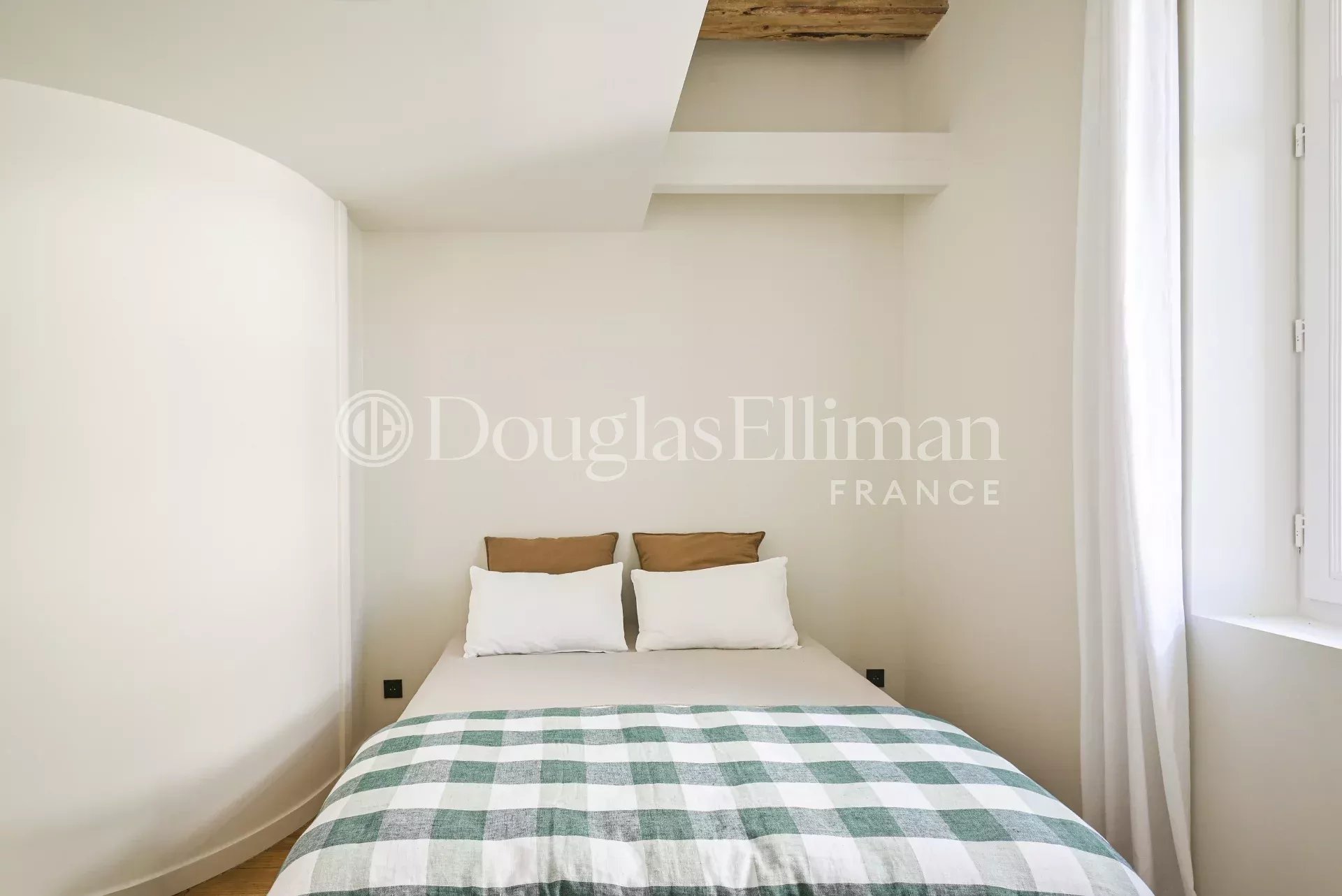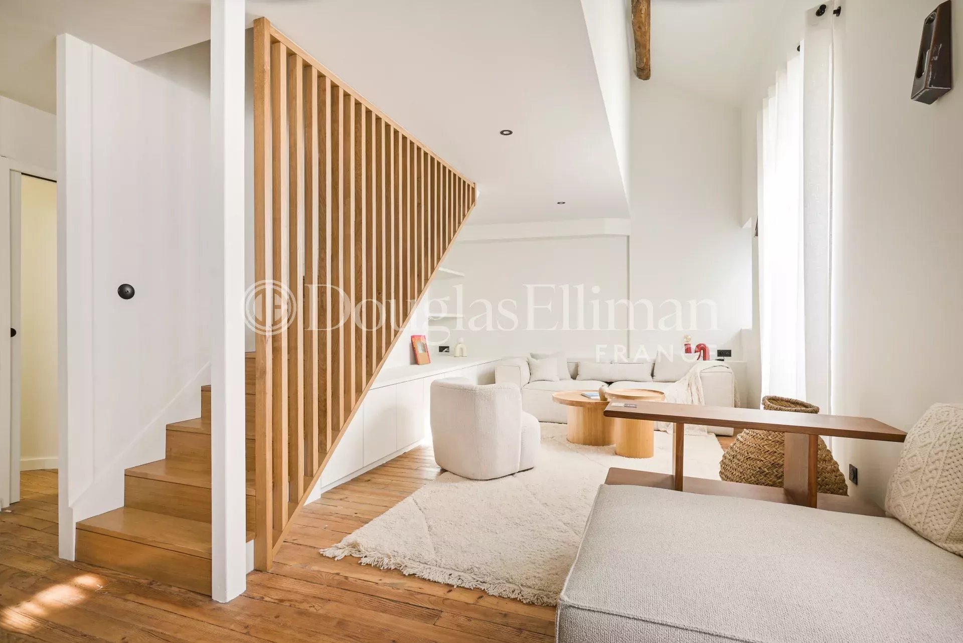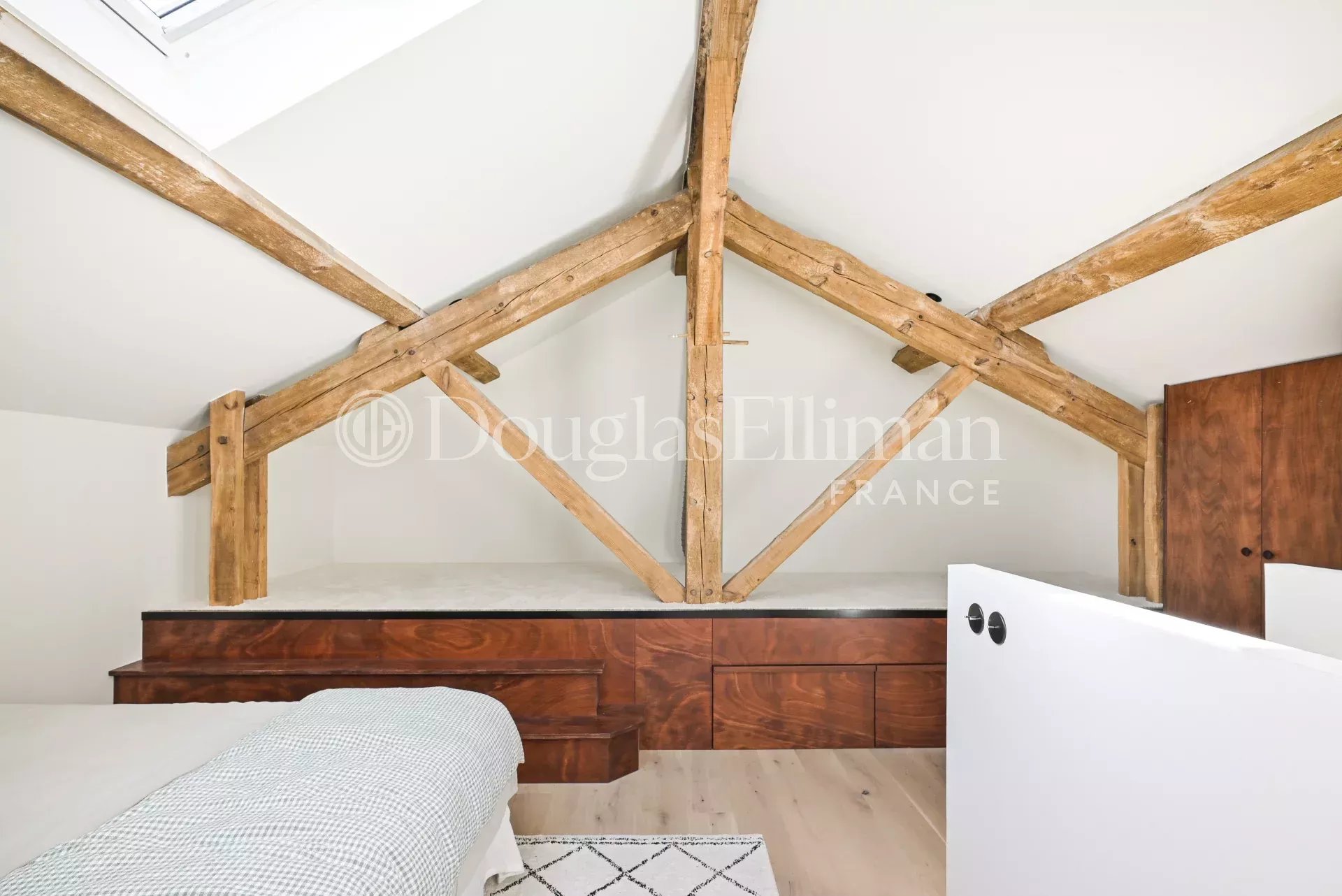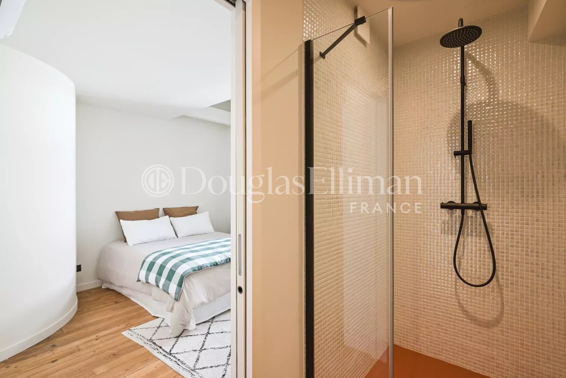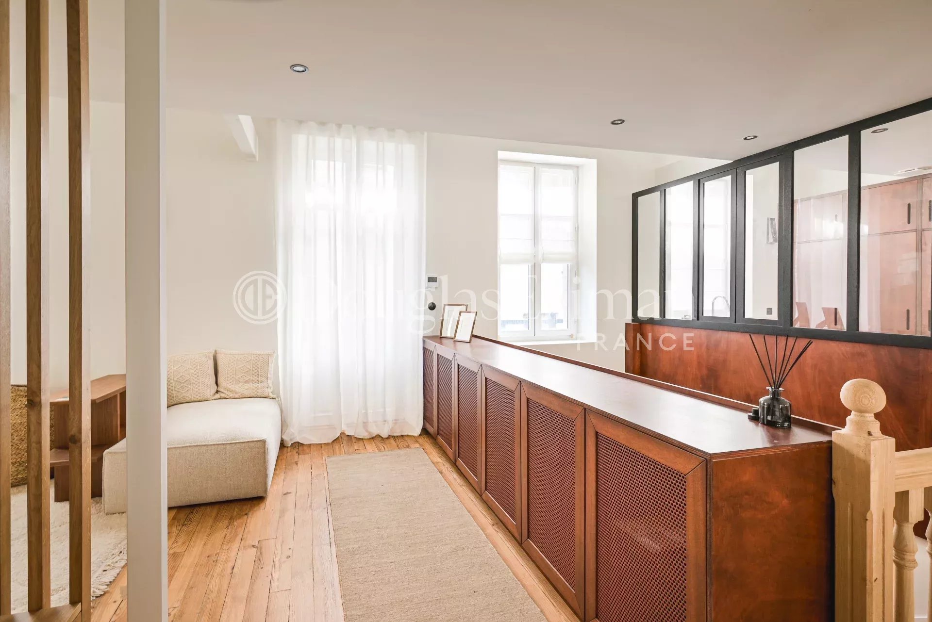 La rénovation complète a privilégié la qualité des matériaux et la mise en valeur des volumes existants repensés : belles hauteurs sous plafond, conservation et restauration des boiseries, apport de lumière naturelle optimisé. L’ensemble est climatisé.
