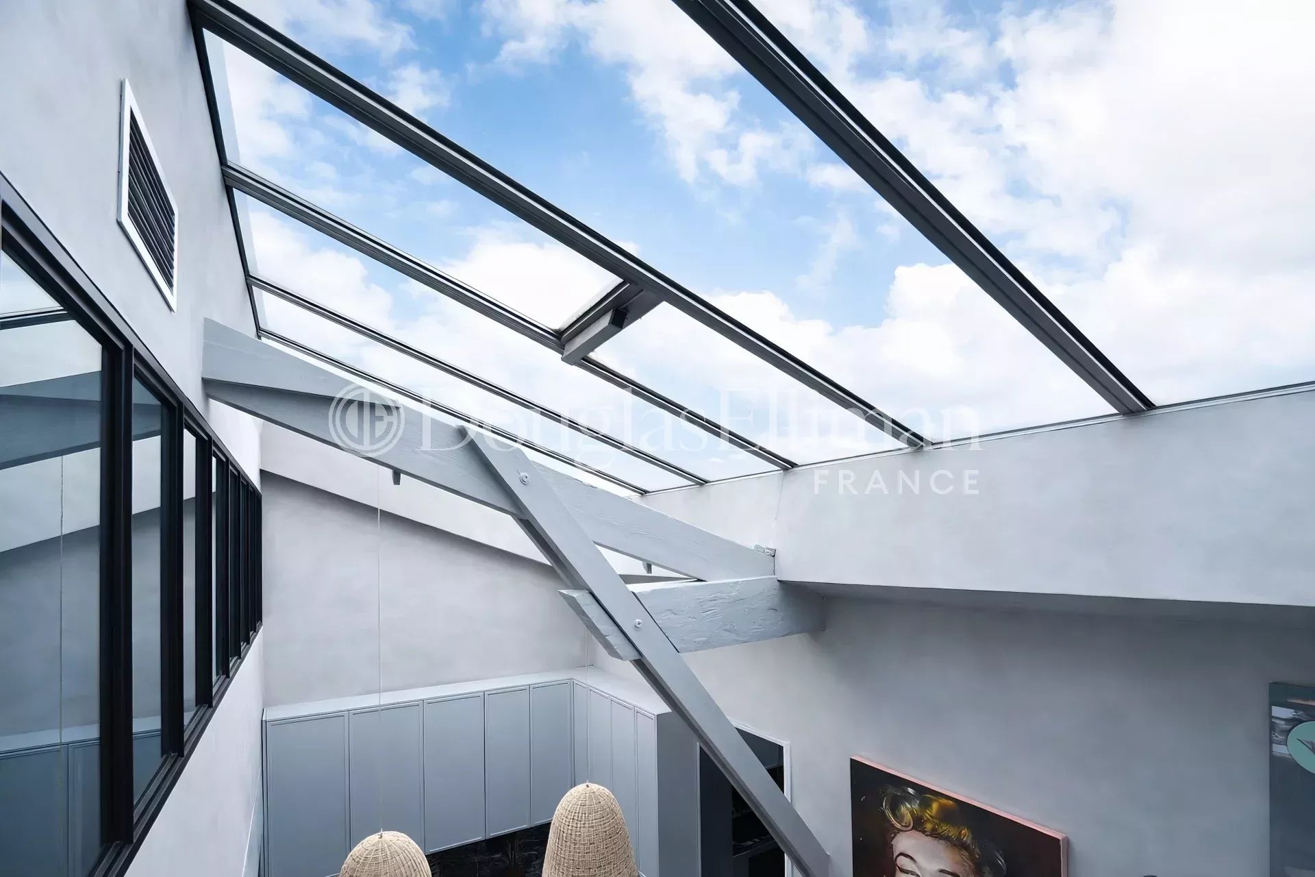 La cuisine, véritable œuvre d’art, est entièrement équipée avec des matériaux haut de gamme, agencée sous une superbe verrière qui invite la lumière à pénétrer en abondance.