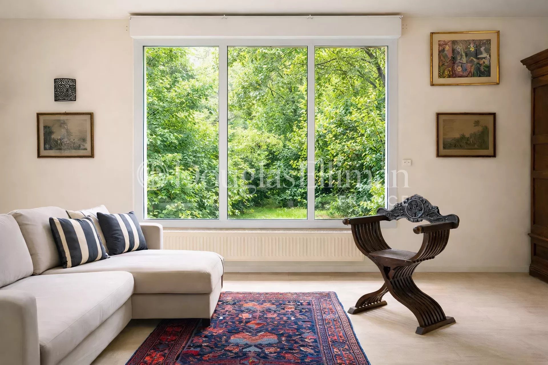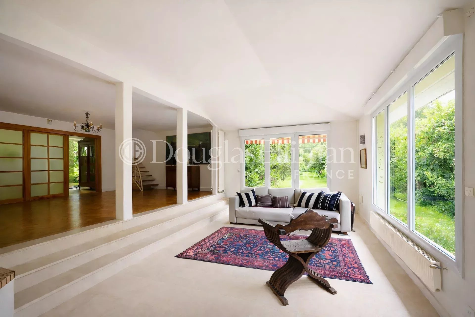Au rez-de-chaussée, une pièce de vie d’environ 60 m² bénéficie de larges ouvertures sur le jardin, apportant une belle clarté tout au long de la journée. Une cuisine indépendante et équipée vient compléter cet espace.