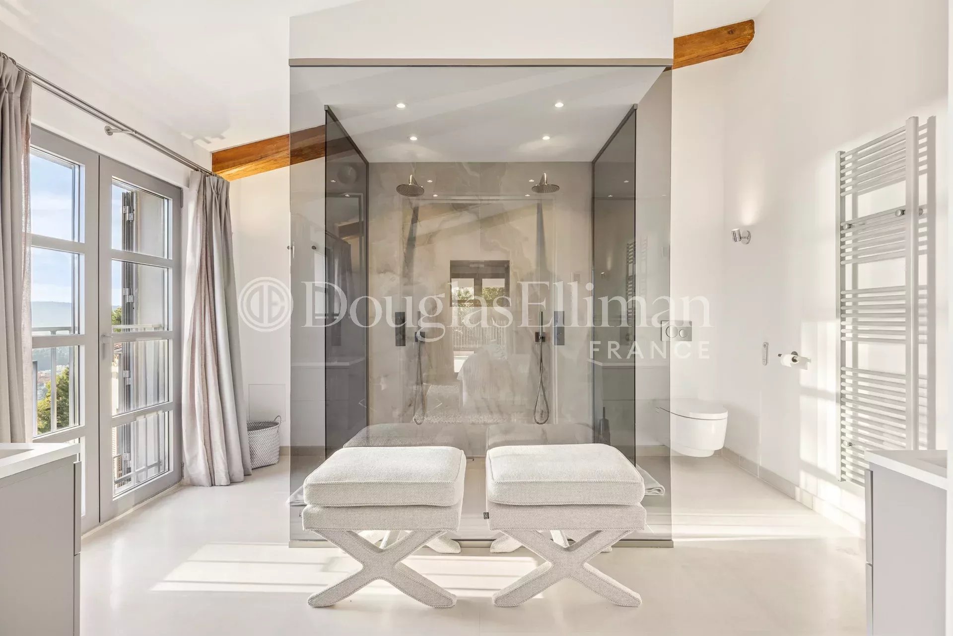 Sans aucun vis-à-vis et au calme absolu, elle est baignée de lumière tout au long de la journée du fait de son exposition sud-ouest, et dispose de volumes généreux, d’un vaste espace de réception, de 5 chambres en suite avec dressings dont une chambre principale avec terrasse privative.