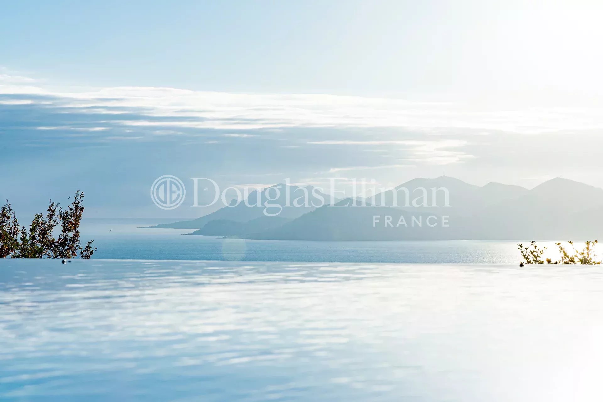 Elle bénéficie d’un terrain paysager de près de 2 300 m² avec piscine à débordement et pool house, salle de sport, ainsi que d’une vue mer a couper le souffle depuis toutes les pièces de la villa.