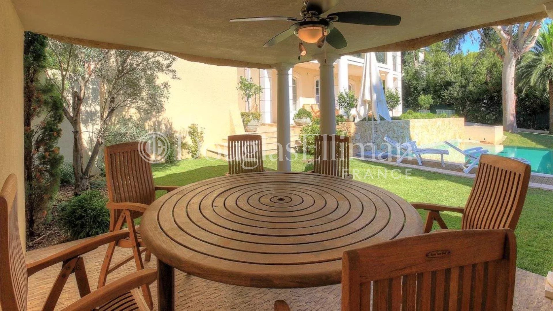 Dans un quartier calme et residentielle, cette magnifique villa avec piscine et vue mer au Cap d’Antibes est située à 5 minutes à pied des eaux émeraude et du sable doré de la plage de la Garoupe.