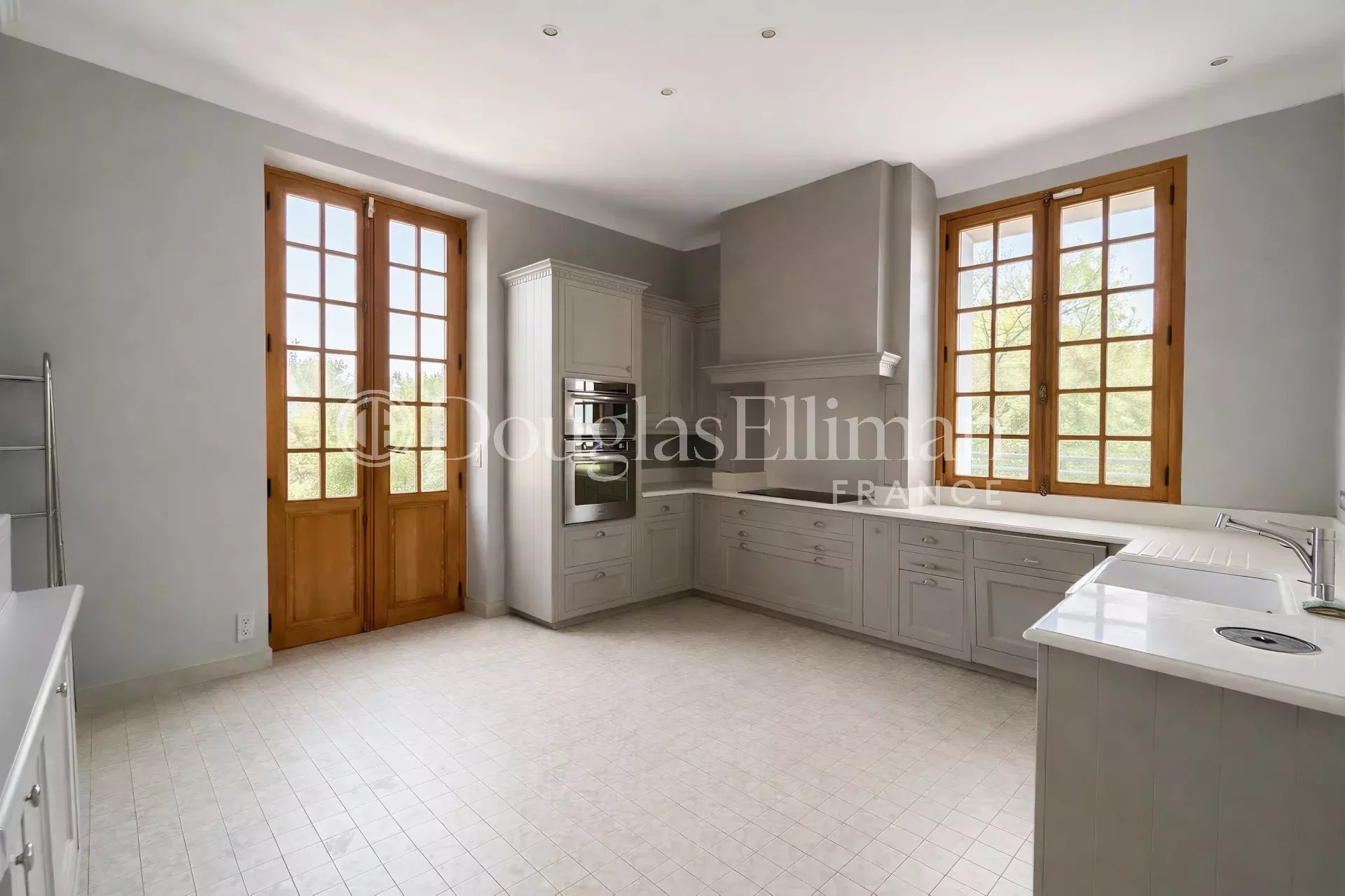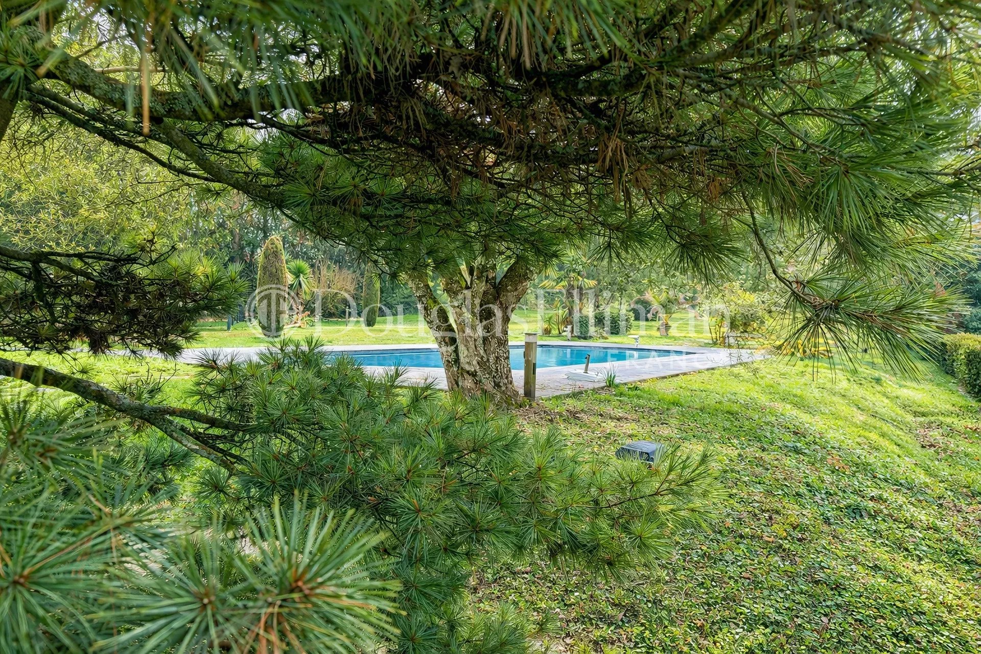 Implantée sur un terrain arboré de 4 000 m² avec piscine, elle propose de beaux volumes. Le séjour s’ouvre sur une terrasse exposée plein sud avec vue dégagée sur le parc. Le salon conserve ses éléments d’origine avec parquet ancien, cheminée, moulures et une belle hauteur sous plafond. La cuisine est aménagée et équipée. L’espace nuit comprend quatre chambres avec placards ainsi qu’un vaste dressing.
