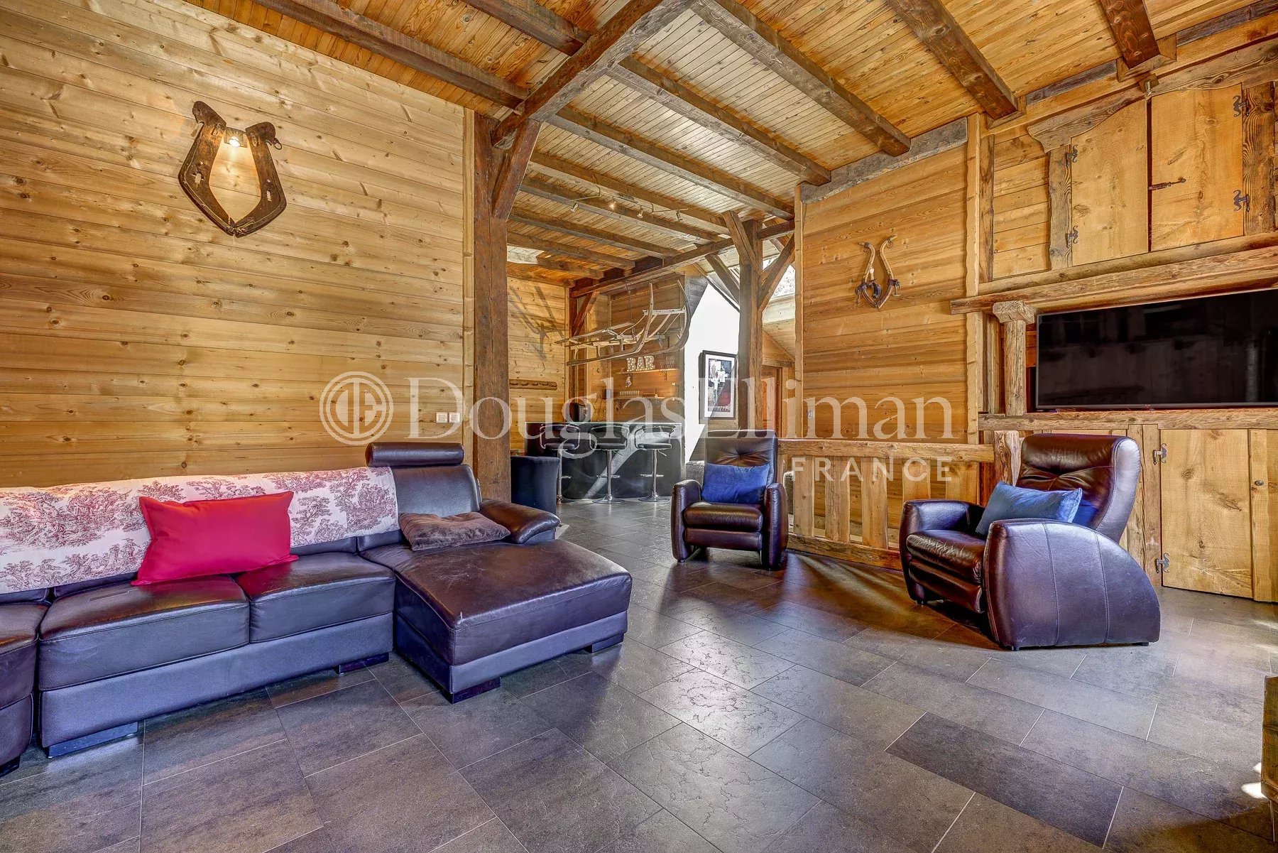 – Grand séjour avec belle hauteur sous plafond, bar et éléments d’origine