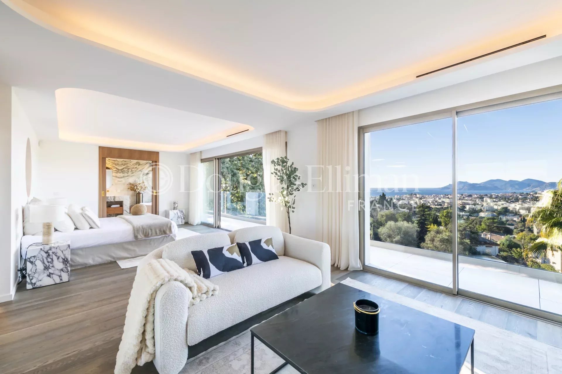 Découvrez cette somptueuse villa offrant un cadre de vie unique et des prestations haut de gamme. Entièrement rénovée avec soin, cette propriété est un véritable écrin de modernité et de raffinement, sublimée par une vue imprenable sur la mer Méditerranée, la baie de Cannes et les collines environnantes.