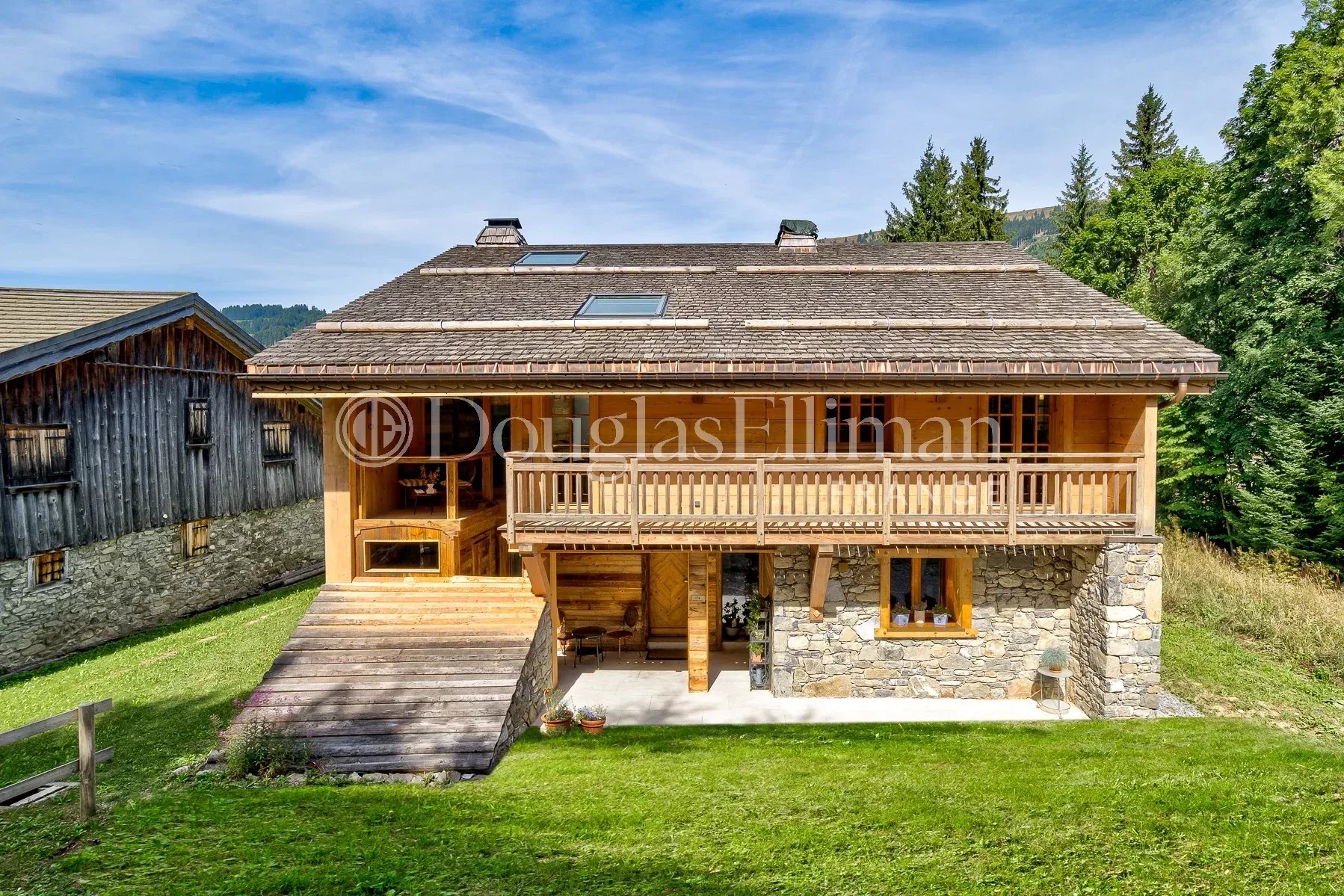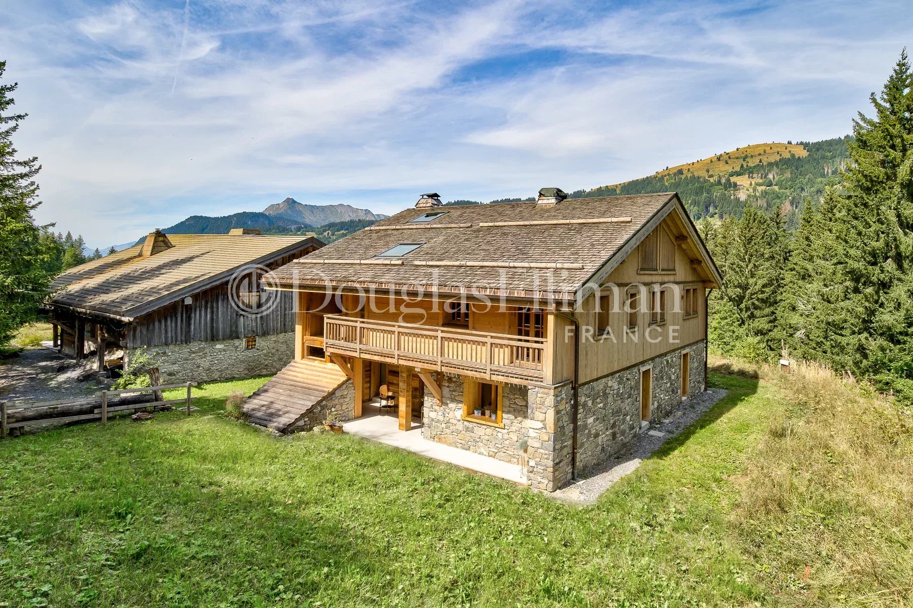 Ce chalet de 6 chambres est une ancienne ferme rénovée située directement sur les pistes, au-dessus des Gets, offrant un véritable accès skis aux pieds dans un cadre bien établi et intime. Répartie sur plusieurs niveaux, la propriété s’articule autour d’un espace de vie à double hauteur qui s’étend sur toute la longueur du chalet. La rénovation a conservé le volume et la structure d’origine de la ferme, ce qui se traduit par de généreuses hauteurs sous plafond et des pièces bien proportionnées dans l’ensemble de la propriété.