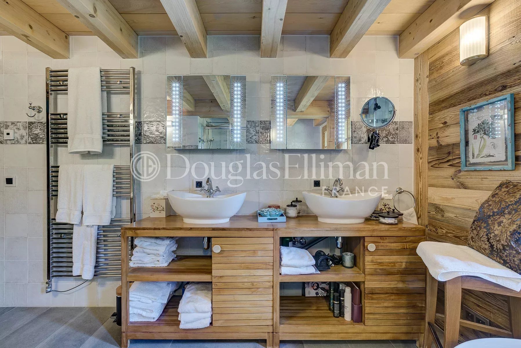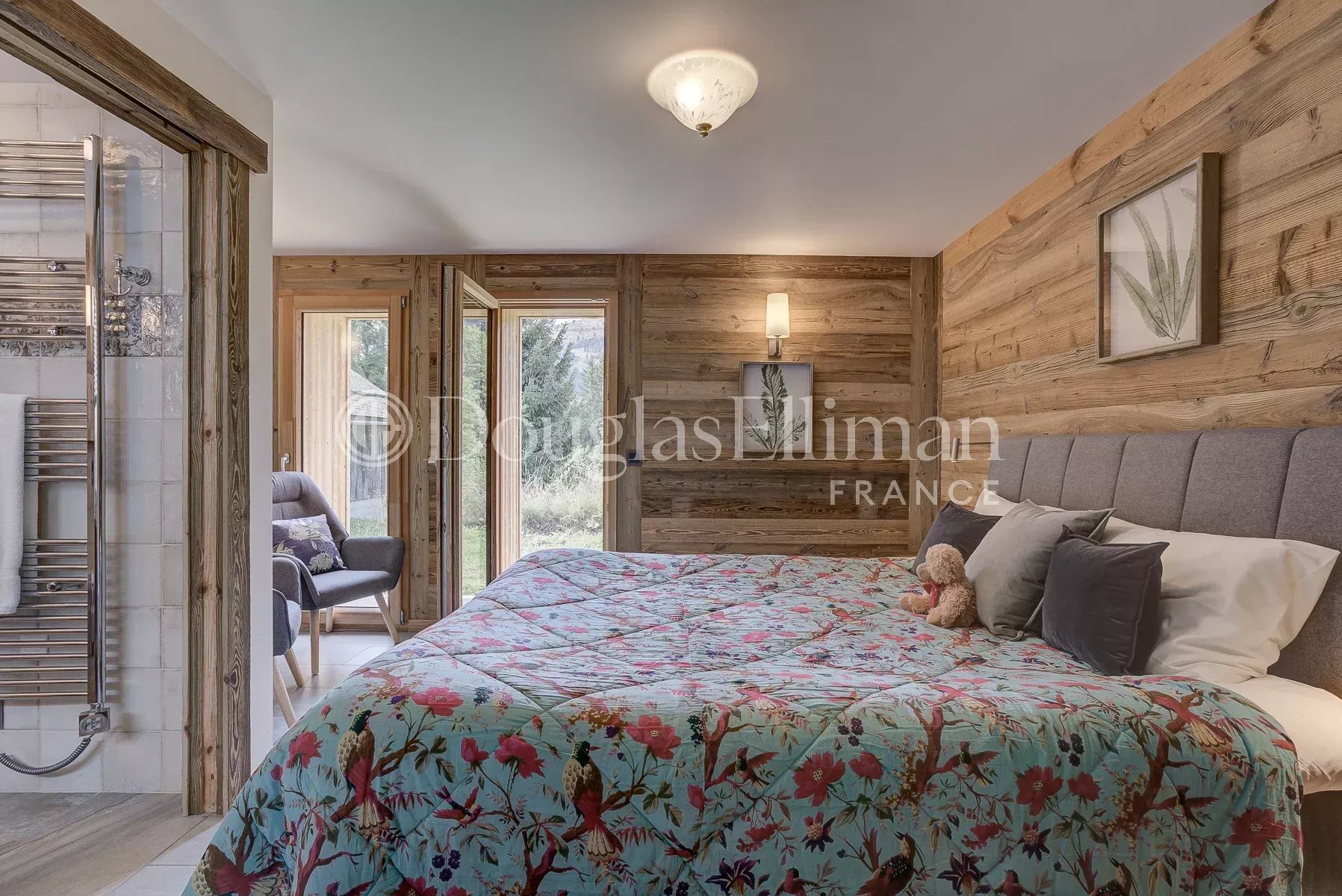 Le chalet comprend six chambres et cinq salles de bains, dont une suite parentale avec plafonds voûtés, dressing et balcon privé. Le rez-de-chaussée inférieur offre un potentiel évident pour créer des espaces de loisirs supplémentaires, tels qu’une salle de sport, une salle de cinéma ou un espace de jeux, selon les besoins.