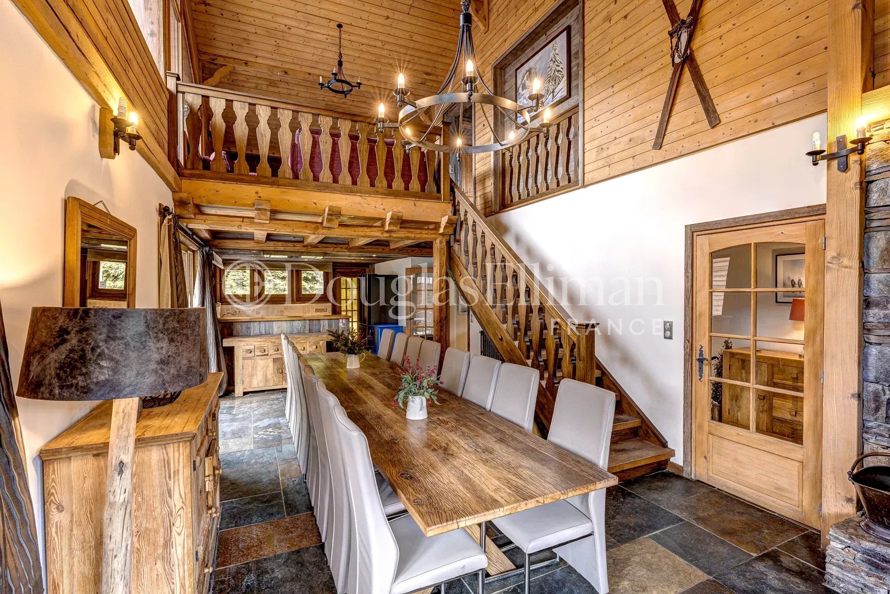 – Salon ouvert, salle à manger avec un poêle à bois et un salon mezzanine séparé