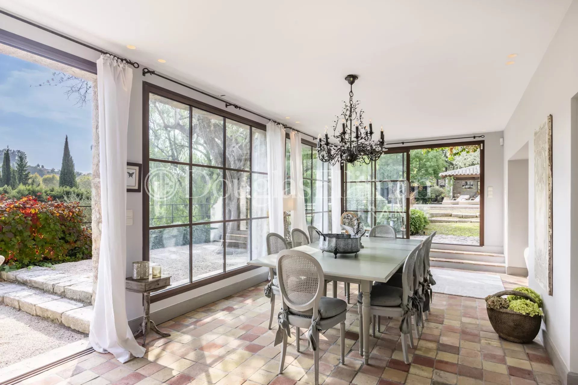 L’emplacement est idéal : toutes les commodités sont accessibles à pied en 2 à 3 minutes, la propriété se trouvant juste derrière les quartiers prisés de Tournamy et du Val de Mougins. Les golfs, clubs de tennis, écoles locales et internationales se trouvent à moins de 10 minutes en voiture.
