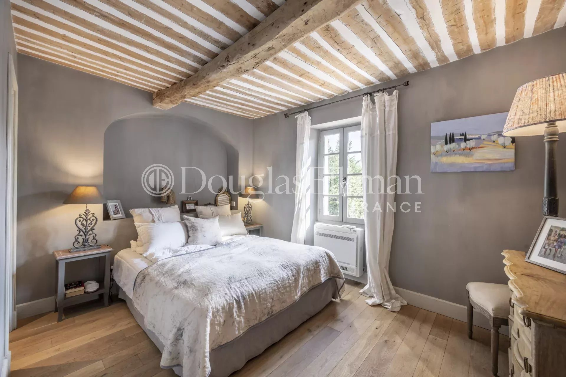 La propriété se compose d’un terrain privé et à l’abri des regards de 3,332m², accueillant une bastide en pierre (Mas) datant de 1850, offrant une surface habitable d’environ 233m².