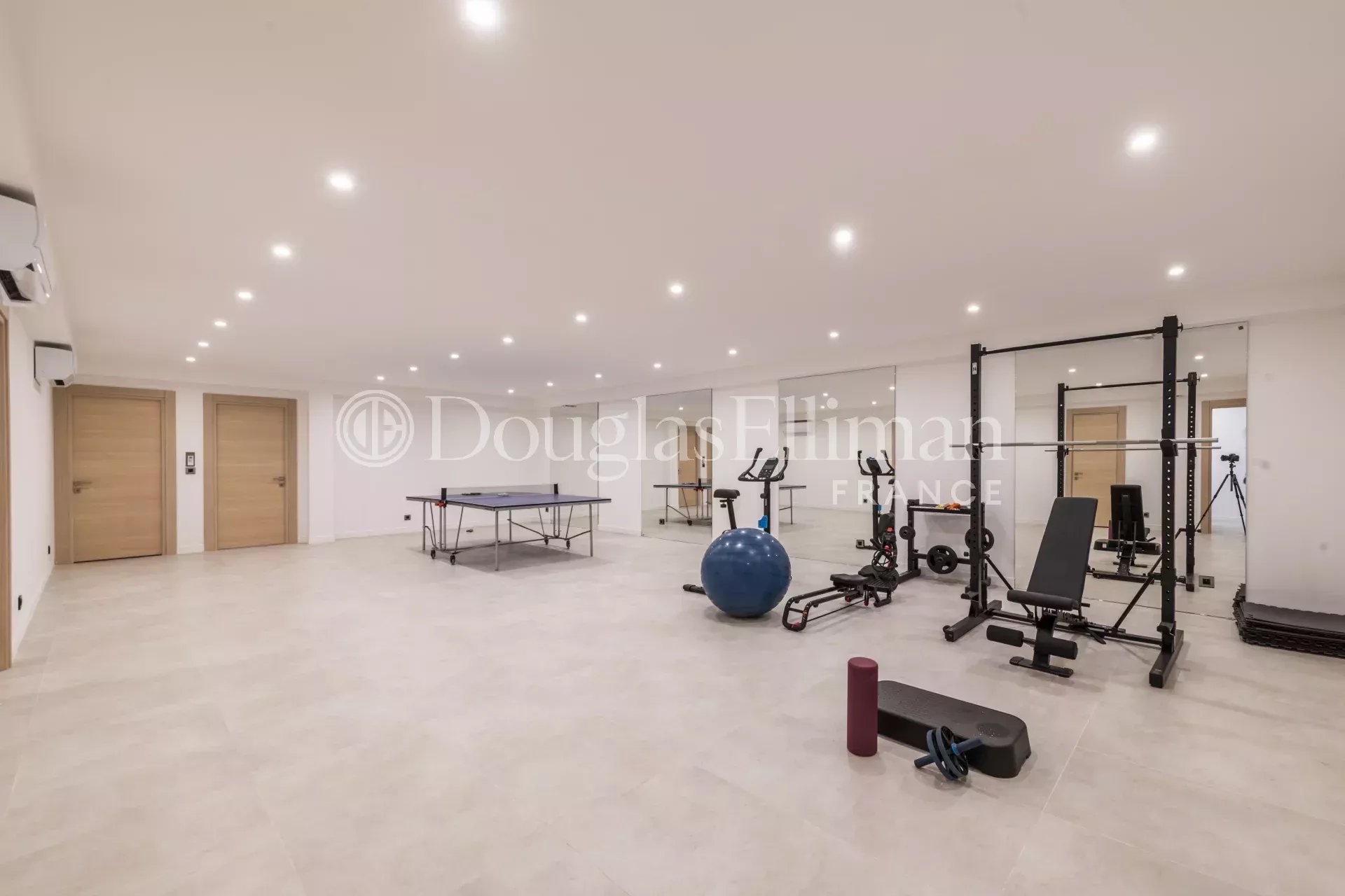Pour vos loisirs et votre bien-être, la villa offre une salle de sport, un home cinéma pour des soirées de divertissement, et une salle de massage pour des moments de détente. Les amateurs de vin apprécieront la cave à vin, tandis que la buanderie et la pièce de stockage ajoutent une touche pratique pour la gestion des tâches ménagères.