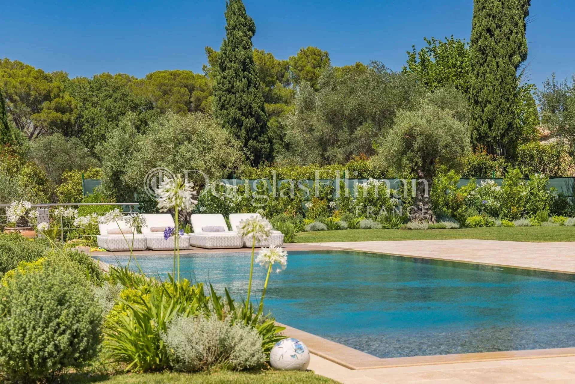 Sur un terrain de 3176m², la villa dispose d’une piscine, d’un salon d’été avec pergola et de plusieurs terrasses. Orientée à l’ouest, la villa bénéficie de couchers de soleil à couper le souffle.