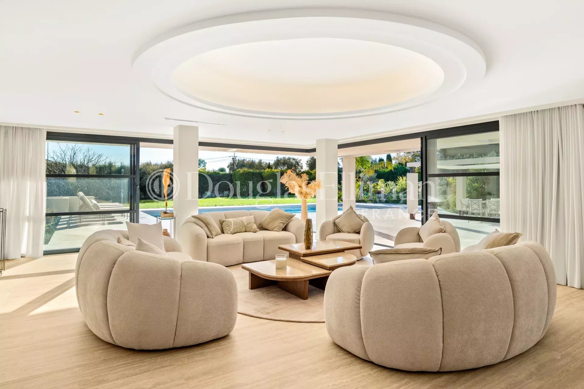 A seulement quelques minutes de Cannes, cette propriété contemporaine entièrement rénovée incarne le raffinement et le confort au cœur d’un domaine privé exclusif.