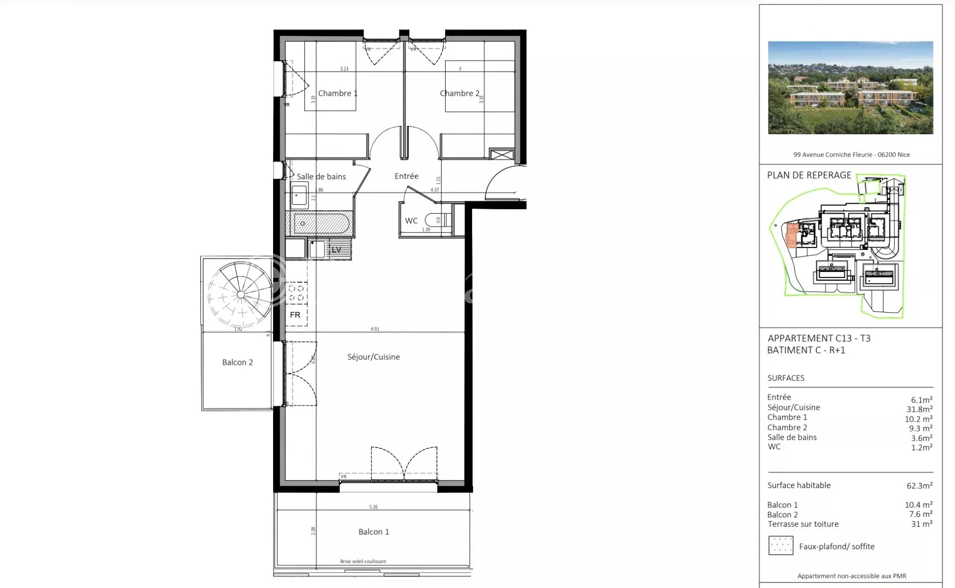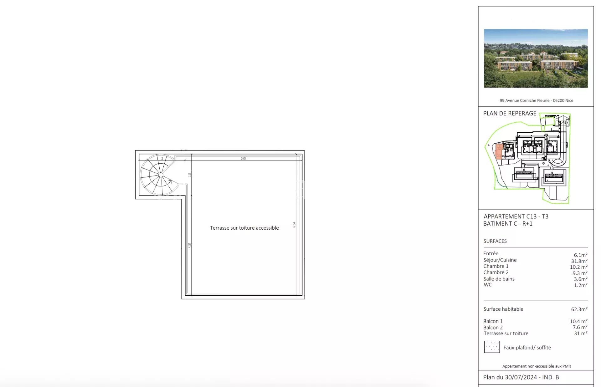 NICE - Penthouse 3 pièces avec toit terrasse jacuzzi et jardin corniche fleurie