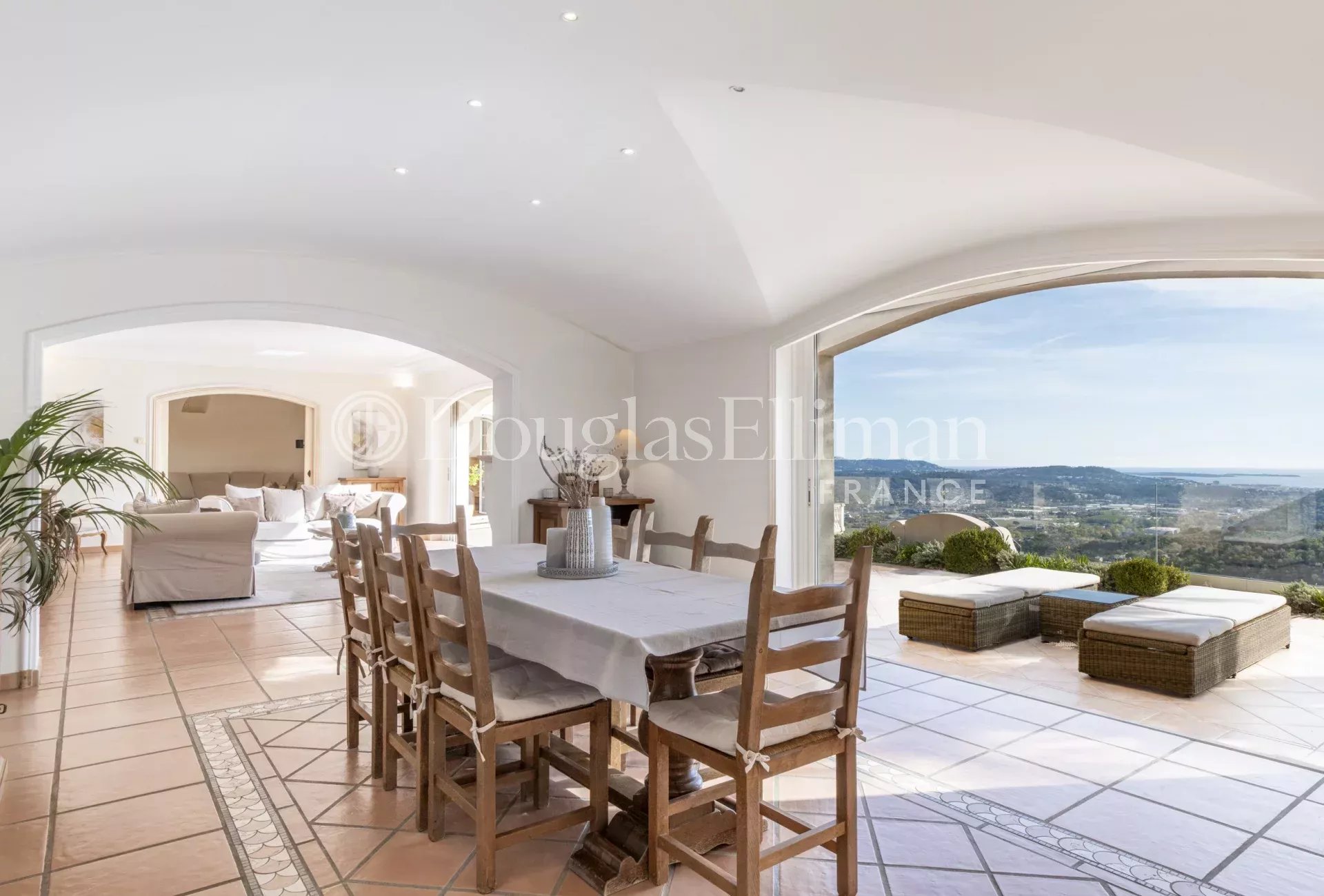 Située à Pégomas, cette superbe villa de style provençal offre une vue panoramique exceptionnelle sur les vallons et sur la baie de Cannes.