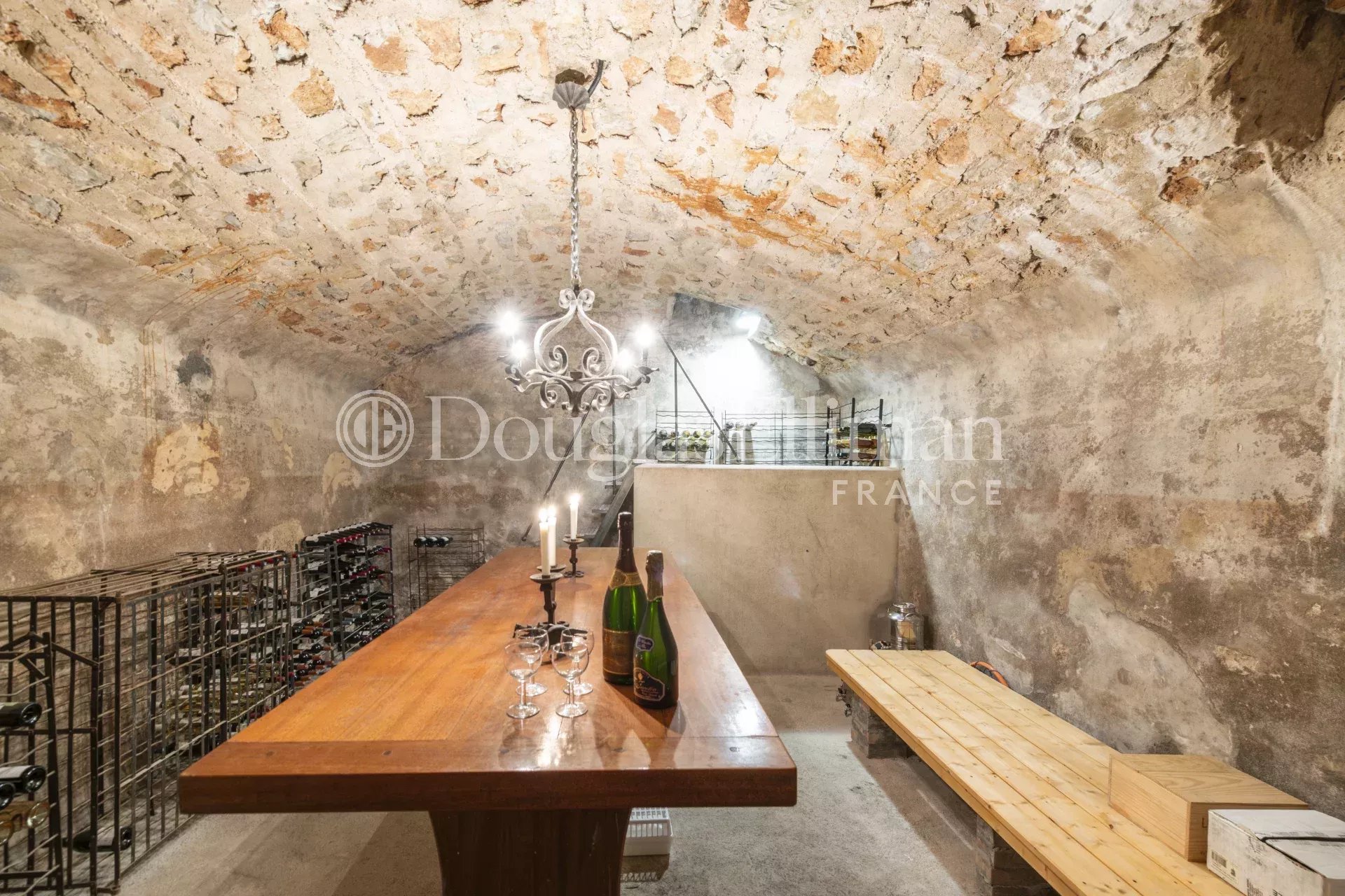 La bastide principale, d’environ 500m², comprend un rez-de-chaussée avec un hall d’entrée, un spacieux double séjour avec cheminée, une salle à manger, une cuisine familiale également équipée d’une cheminée, une arrière-cuisine et une buanderie. S’y trouve également, un vestiaire, une orangerie et une magnifique cave à vin avec une sa salle de dégustation attenante. Au même niveau, une entrée indépendante mène à une chambre d’invités, comprenant un salon privé, une salle de bain et une terrasse couverte.
