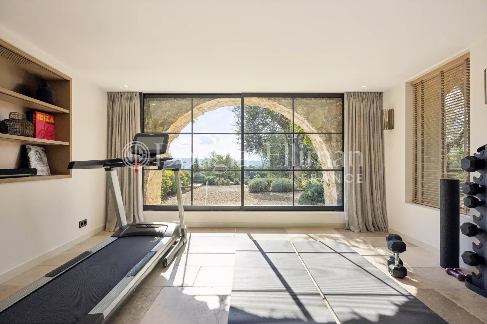 La propriété offre des vues panoramiques sur la campagne vallonnée jusqu’à la mer Méditerranée, créant un lien naturel et harmonieux avec le paysage. À proximité du charme de Valbonne, du raffinement de Cannes et à quelques minutes seulement du Mougins International School, tout en restant isolée pour une intimité totale, cette villa dépasse le simple cadre résidentiel, c’est un véritable havre de paix. Un lieu pour recevoir avec élégance, se détendre en toute sérénité et profiter de vastes jardins où les enfants peuvent jouer, tout en expérimentant le style de vie raffiné de la Riviera.