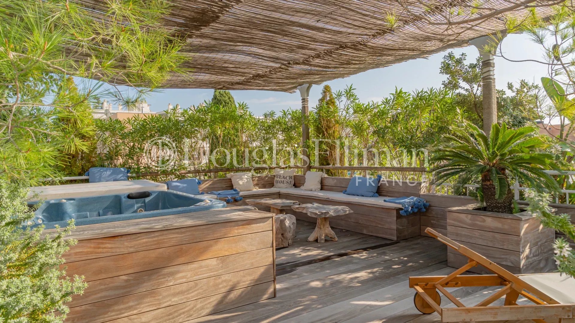 • Une terrasse privative sur le toit de 35 m², habillée de bois exotique, avec jacuzzi, végétation et vue à 360°, sans aucun vis-à-vis.
