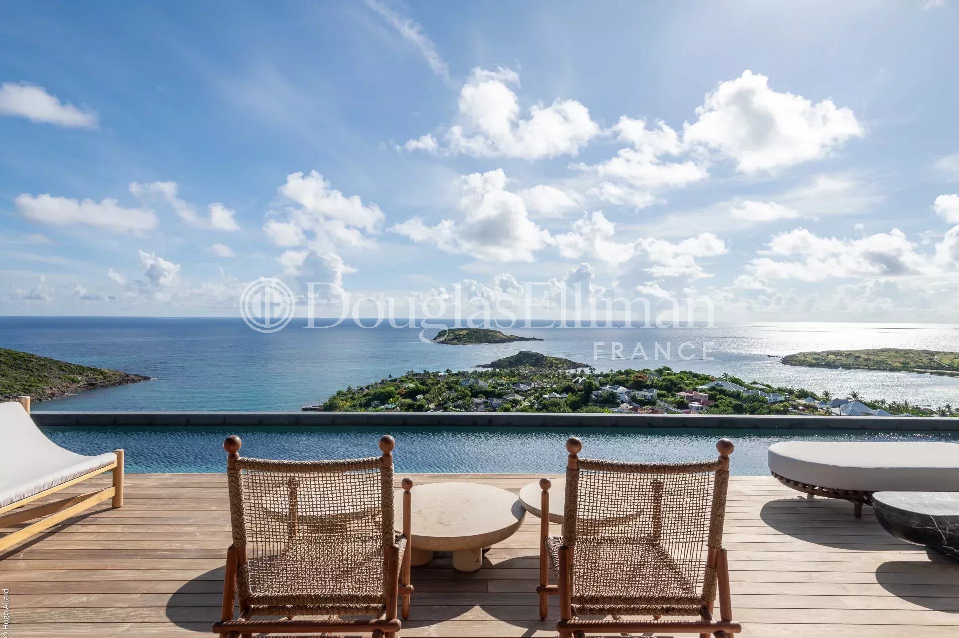 Accessible par escalier ou ascenseur, la seconde villa, dominant majestueusement la baie de Marigot, offre 356 m² de superficie plancher. Elle se compose de six chambres avec salles de bains, d’un vaste séjour baigné de lumière et d’une cuisine ouverte entièrement équipée, le tout s’ouvrant sur une spectaculaire terrasse avec piscine à débordement de 52 mètres de long, véritable ligne d’horizon suspendue entre ciel et mer.