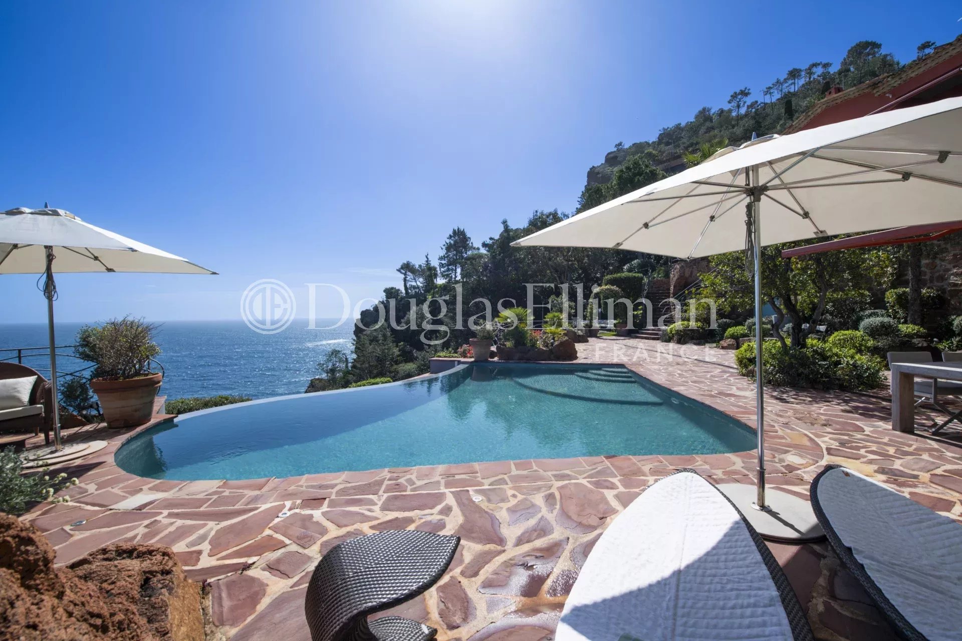 VALLAURIS – GOLFE JUAN – Villa entièrement rénovée avec vue mer & piscine à débordement